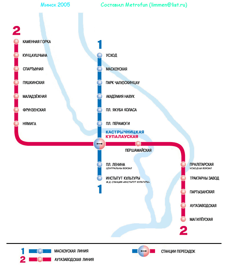 Сейчас линия 1 - синяя, это по лфициальной схеме Минска. Они (белорусы), вообще приколисты: у них на половине схем так, а на другой половине сяк, так что я решил отталкиваться от нынешней официальной расцветовки! Но, варианты, безусловно есть!