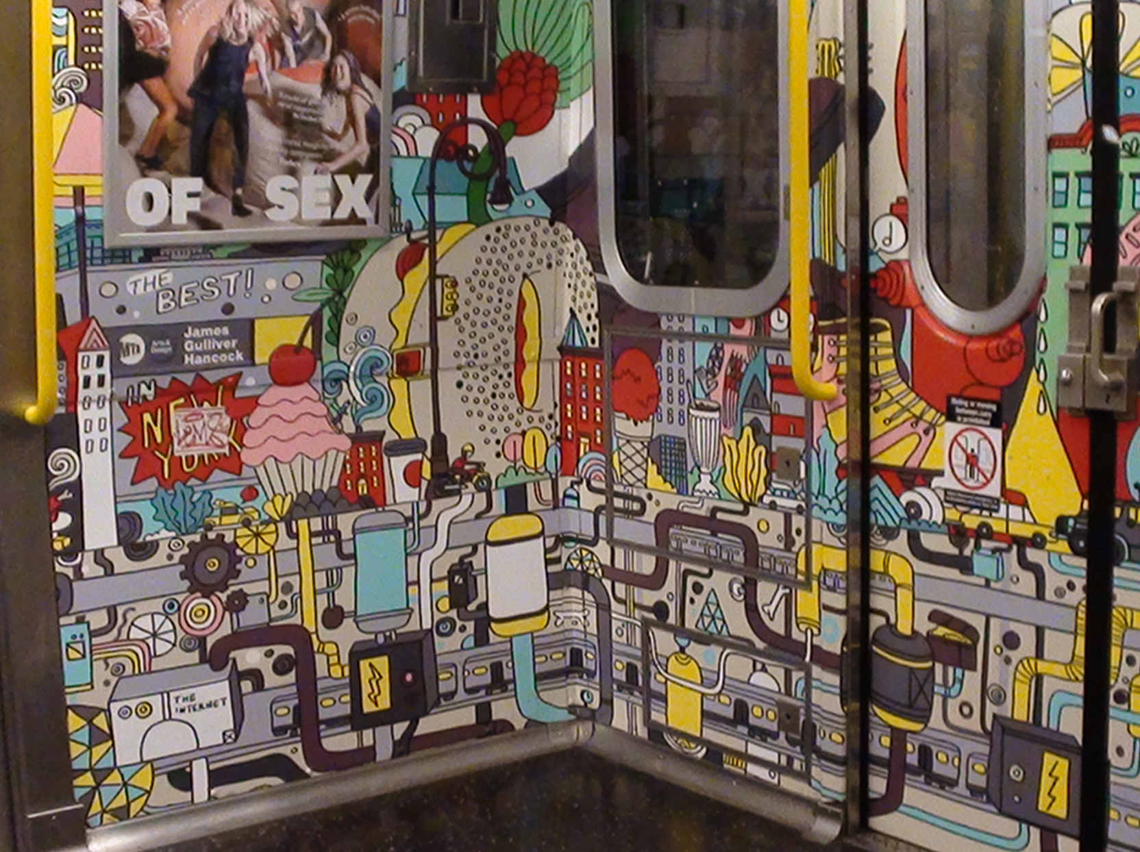 В Нью-Йорке замечен обклеенный состав внутри, что является редкостью для данного города.