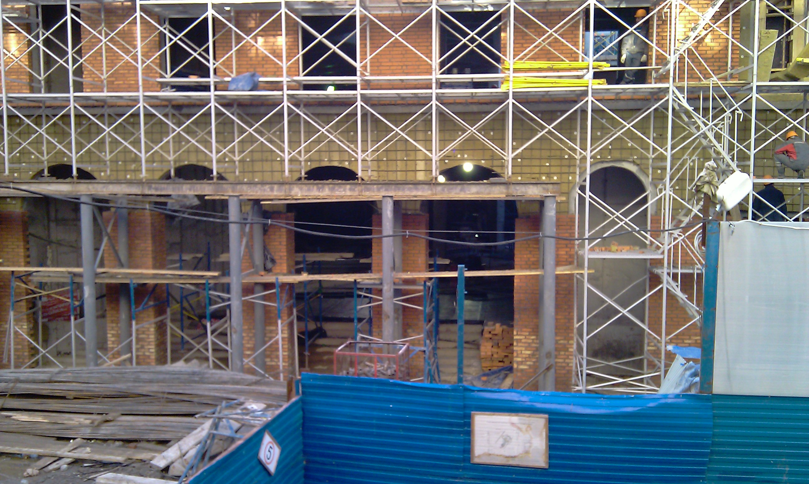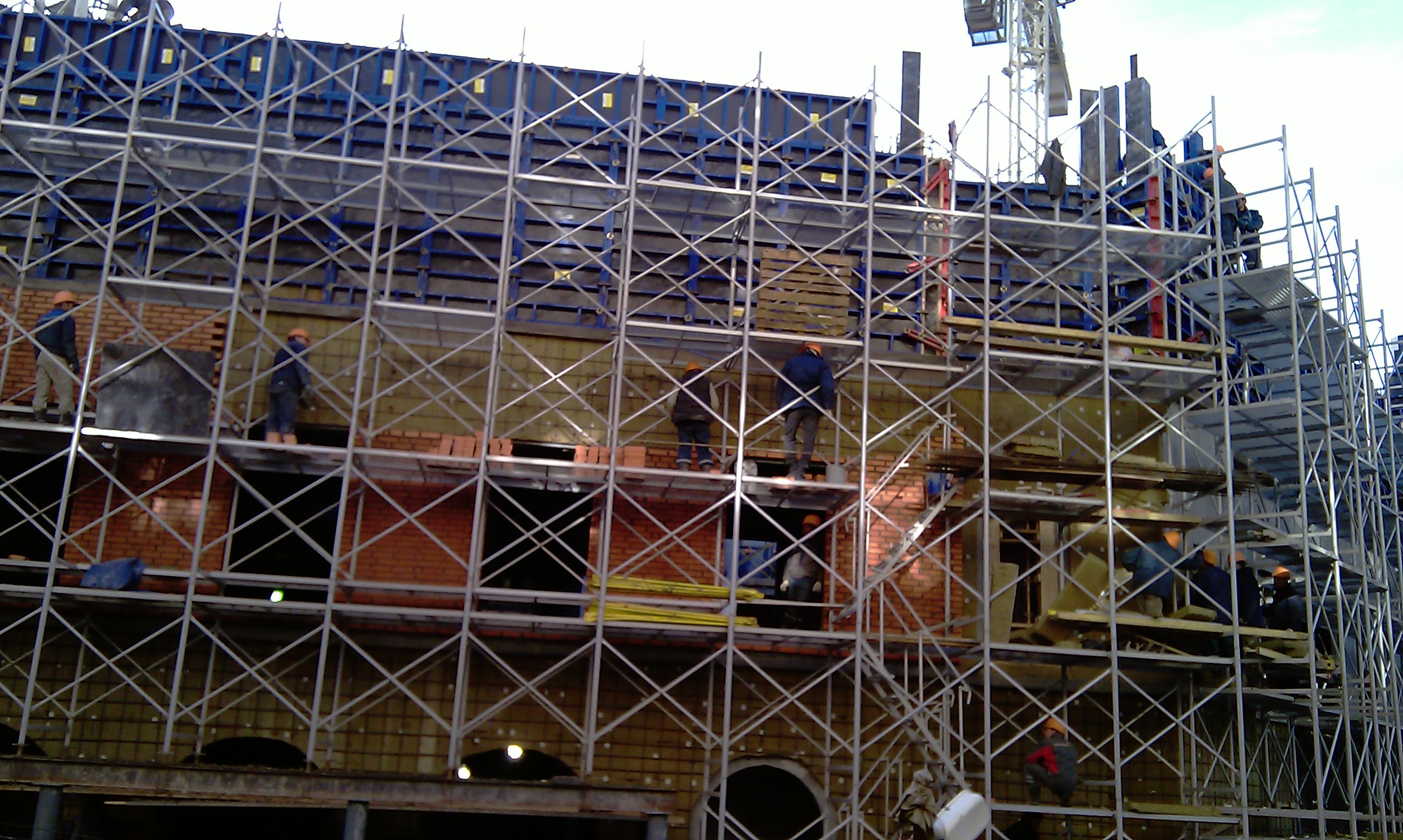 Здание строят невероятно быстро. Уже высокое и обкладывают кирпичом. Совсем недавно никаких кирпичей не было еще. Кирпичи, полагаю, декоративные?
