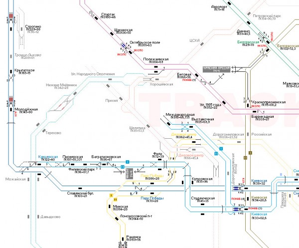 Схема организации движения с сайта http://trackmap.ru/ на рисунке 2. Вообще так не выходит вроде. Надо менять направление движения на ДЦ 3 раза с пассажирами, проезжая 2 раза станцию, потому что тупики за ней еще не построены, оборот происходит по тупикам перед станцией. Потом развернувшись и добравшись до Шелепихи 2 раз надо ехать только дальше до Хорошевской и только там можно развернуться опять с 3 сменами движения, чтобы поехать к Раменкам. Короче там пассажир будет ездить кругами, а именно Хорошевская-Шелепиха-ДЦ-ДЦ-Шелепиха-Хорошевская-Хорошевская-Шелепиха-Парк победы.
