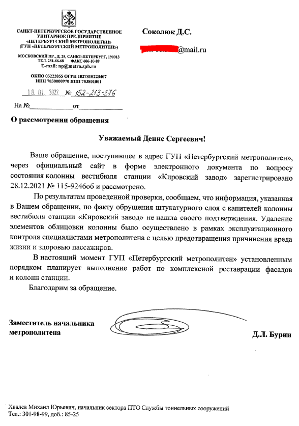 Обожаю эти отписки, отвалилось часть убранства - вы фсё врёте ихтамнет и всё прочее. Траволаторы не работают два года - вы фсё врёте мы фсё починили.