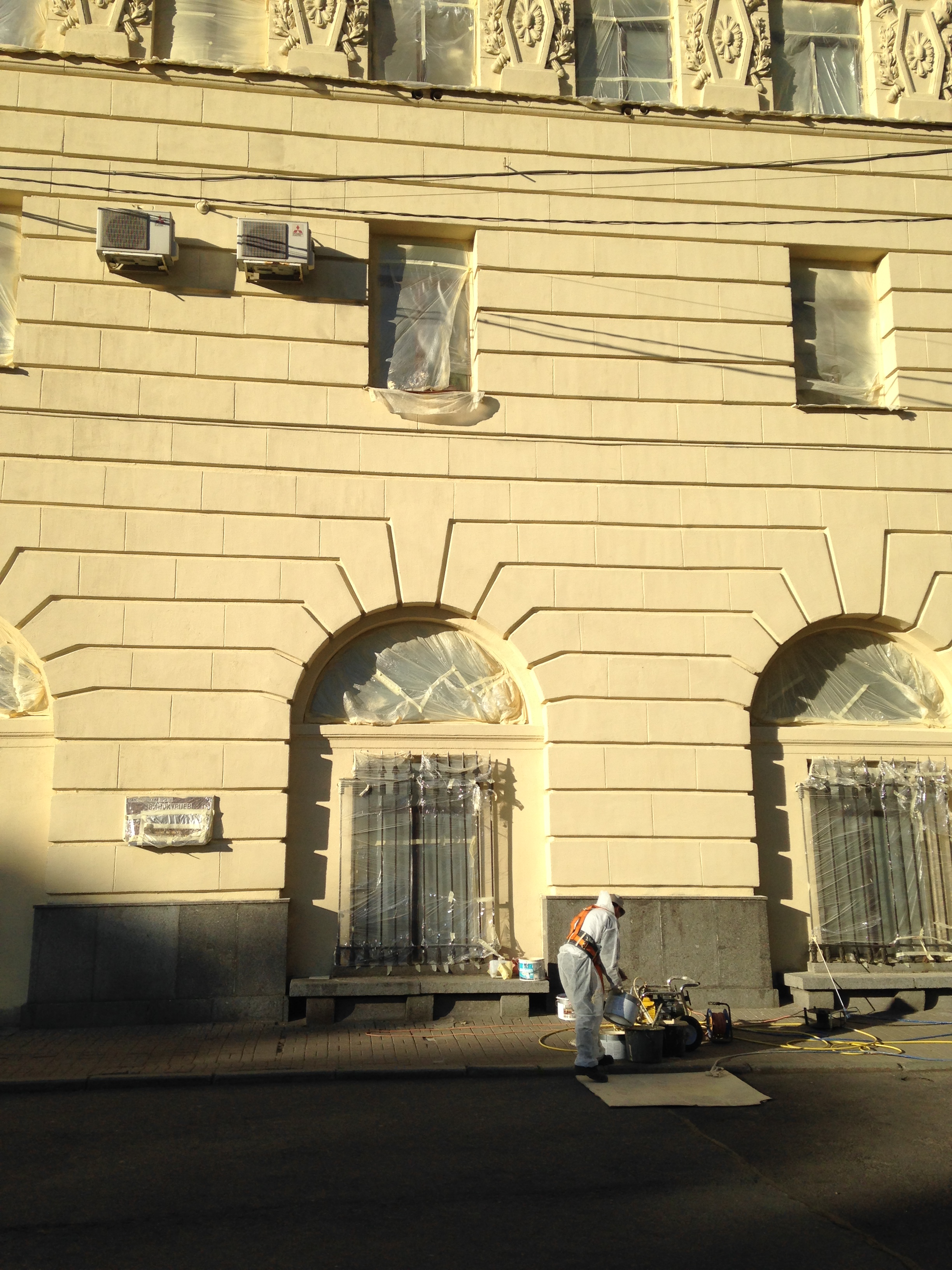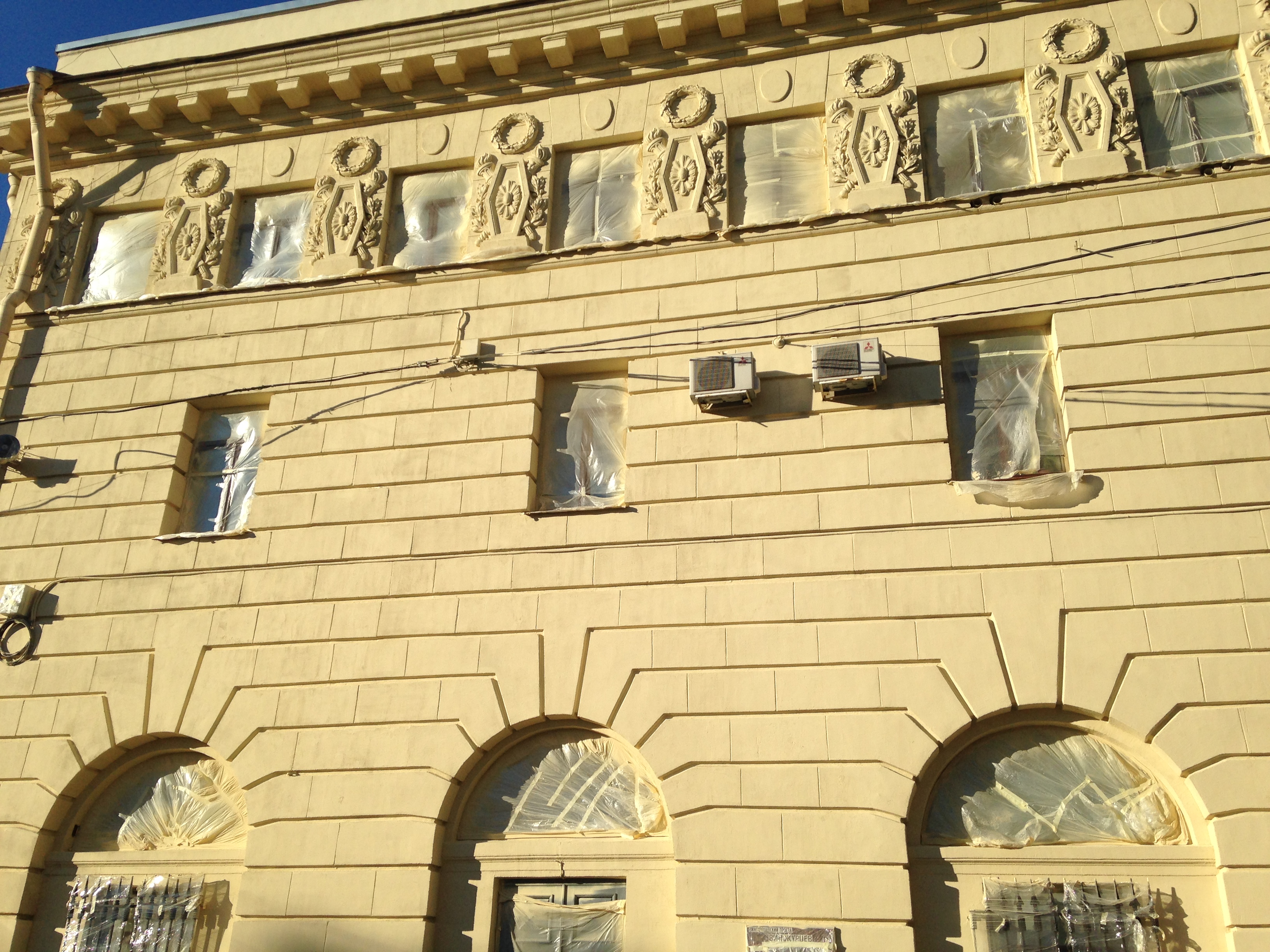 Вчера вечером докрасили фасад здания.
