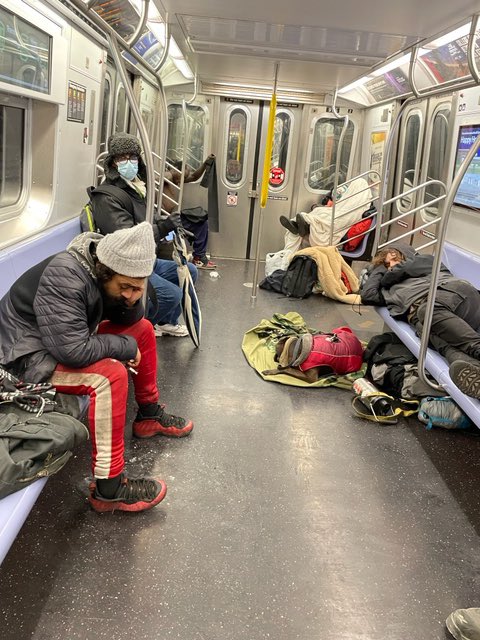You know why NY’s ‘recovery’ isn’t happening? This photo today on the E Train at 6:45am at 42nd & 8th says it all. Why should working people & tourists be subjected to this? How’s it fair to those who need services? Imagine the cops’ frustration with no support to deal with it!