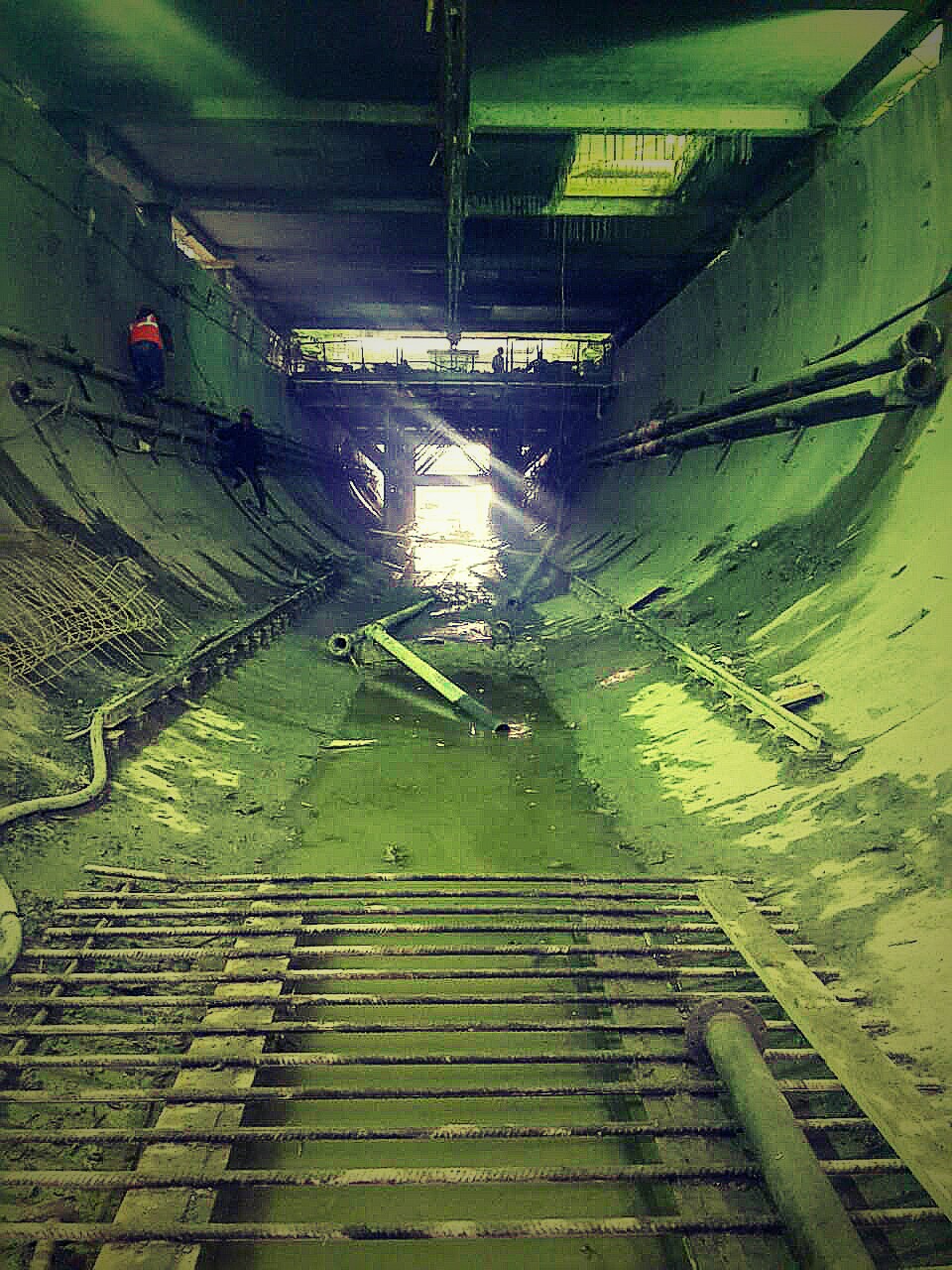 Но зато строители не ждут и делают перекрытие между нижним и средним ярусами. Возможно это дает некоторое распараллеливание. По фоткам видно что снимают верхушку тоннеля, делают перекрытие (используя основание тоннеля как жесткую поверхность для подпорок) и затем демонтируют остальные блоки.