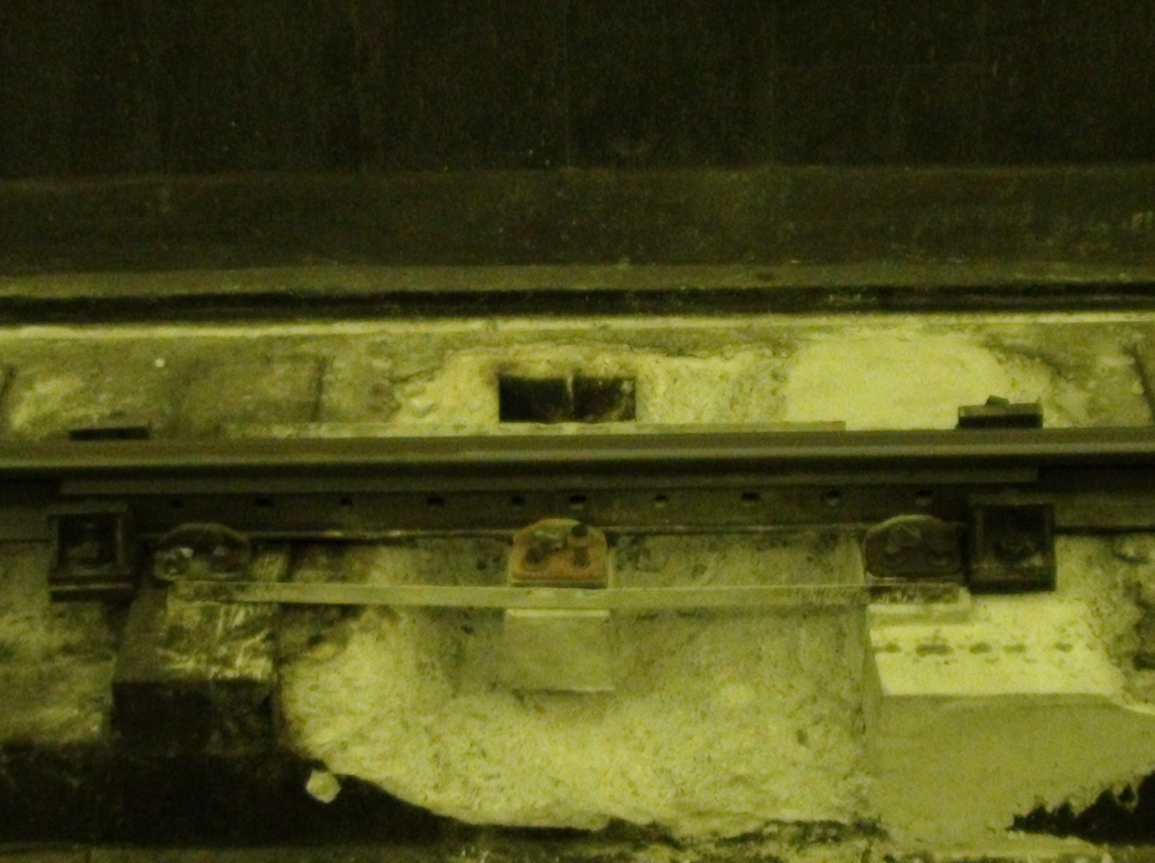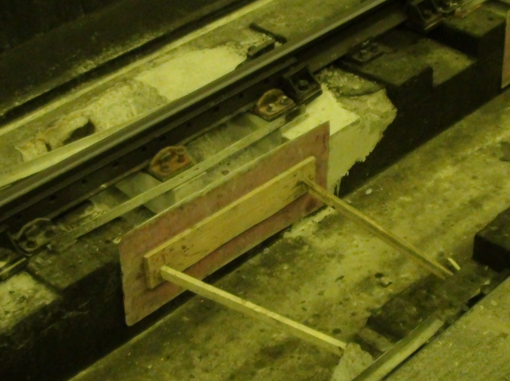На путях станции "Сенная пл." подпорки. Видимо, укрепляют пути. Интересно, насколько есть вероятность схода на станции, если не поставить данный подпорки?