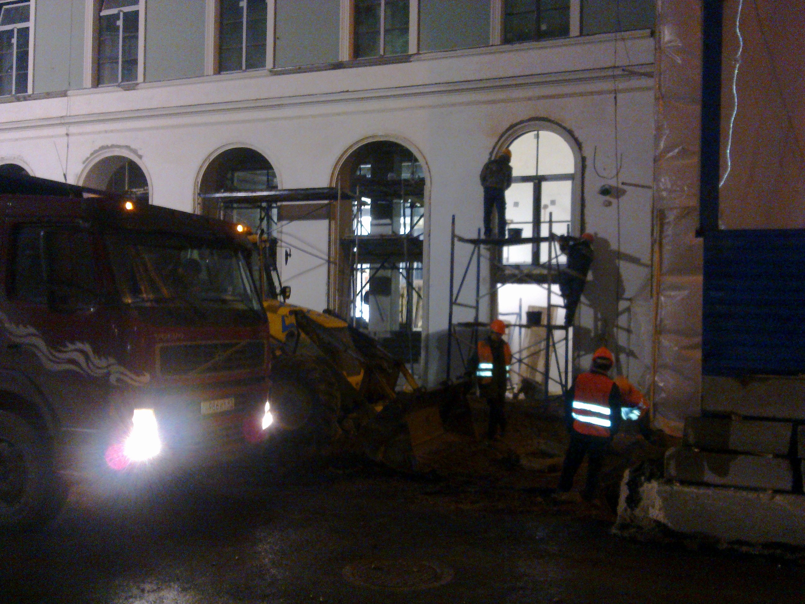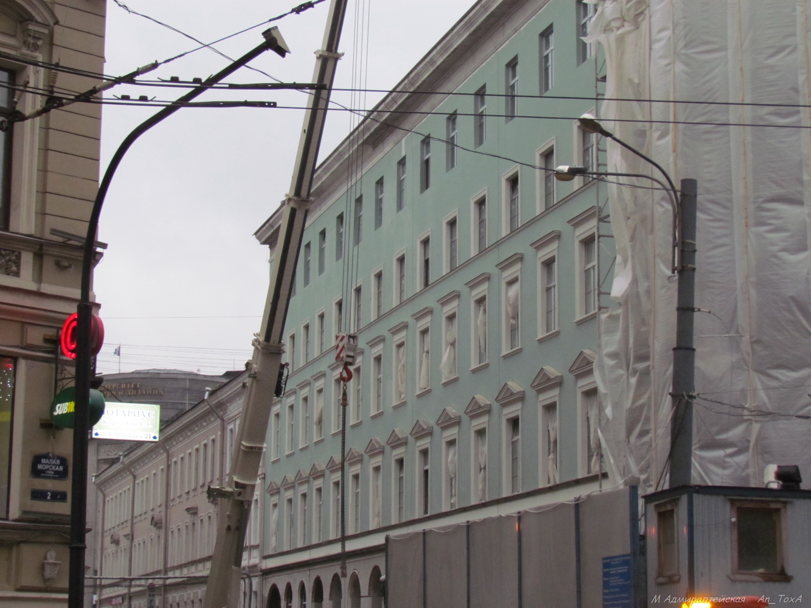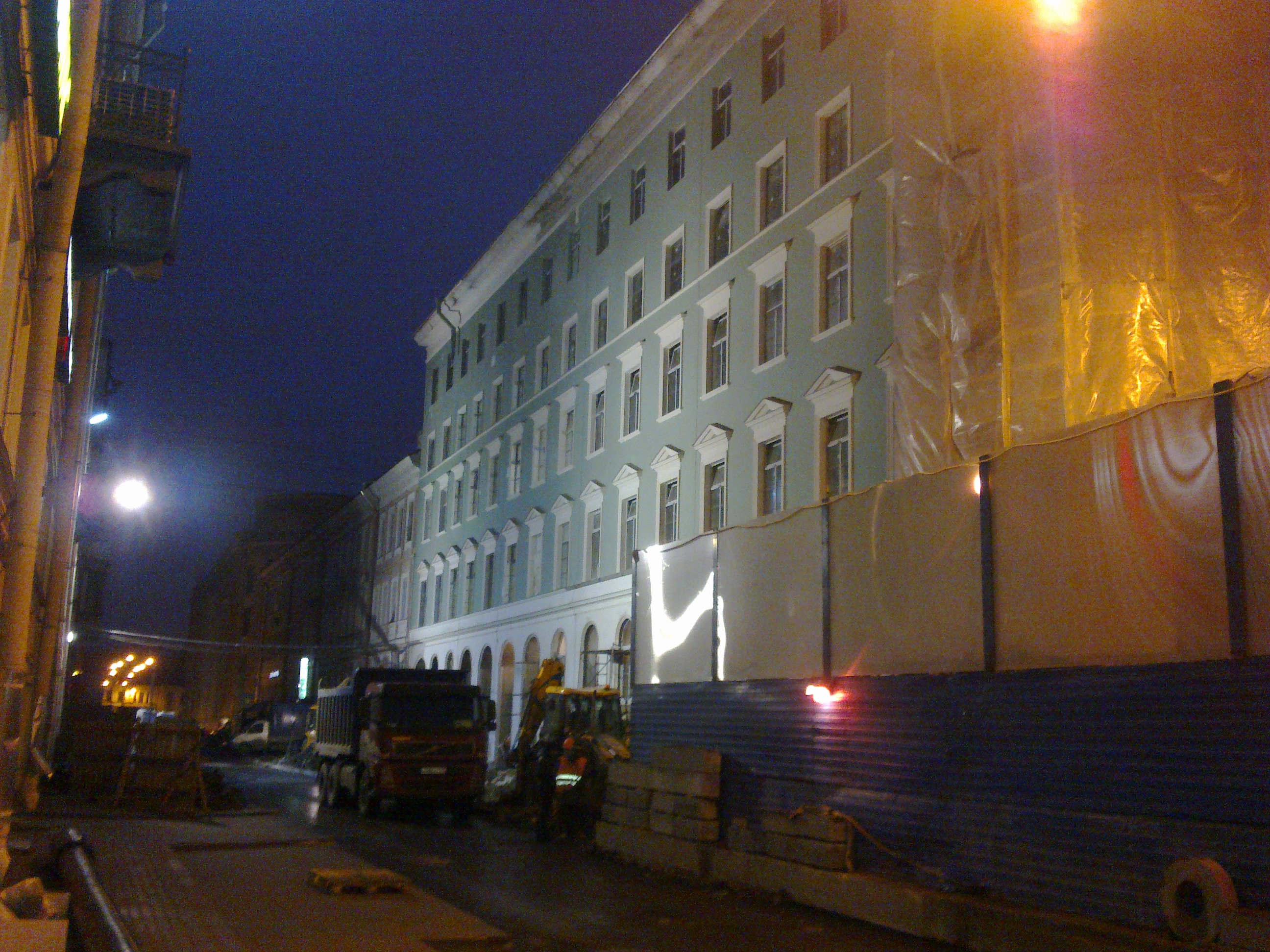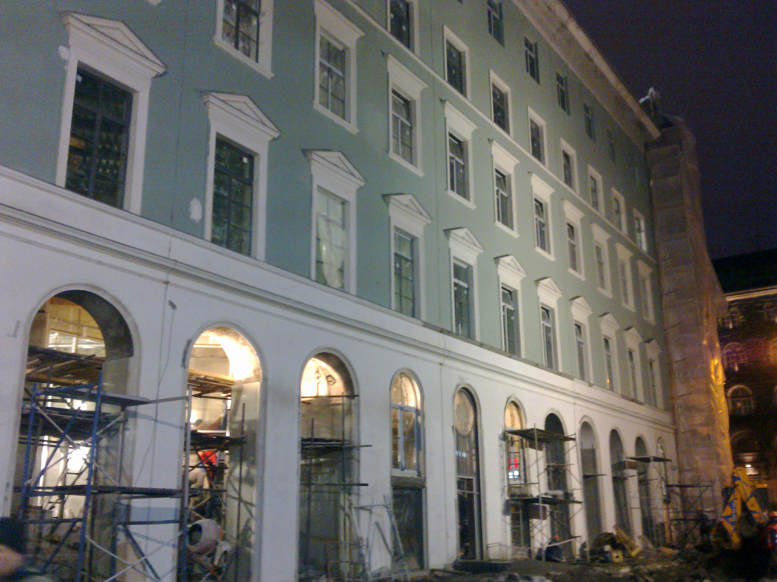 Как рассказал сегодня корреспонденту «Карповки» официальный представитель ОАО «Метрострой», минувшей ночью с фасада, обращенного в Кирпичный переулок, сняли строительные леса. Угол здания и фасад, выходящий на Малую Морскую улицу, по-прежнему закрыты. Полностью с фасадами предполагается закончить до 20 декабря, сказал наш собеседник.