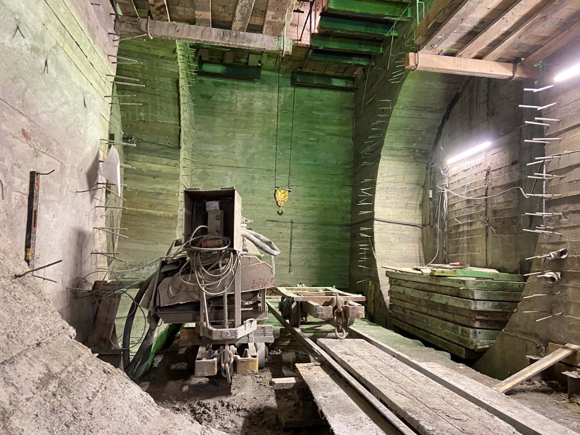 Камера на пересечении тоннеля с НВУ 841. Первое фото - "очко", ждущее щита; второе - "очко", ждущее воскресного начала проходки 46 метрового тупика (в перспективе перегона к Брестской). Наверное, никто ничего не понял) На третьем фото общий вид КаНаПе. Когда-нибудь здесь будут пролетать электрички, и мало кто из пассажиров заметит тусклый свет вентшахты 841