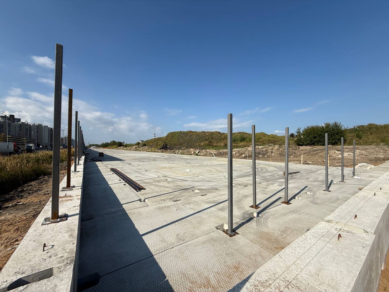 Сейчас продолжается установка строительного ограждения и укладка дорожных плит на песчано-гравийную подушку вдоль улицы Маршала Казакова в сторону улицы Доблести. На этом участке разместятся основные наземные постройки: отстойно-ремонтный корпус, склады, цеха, технические и административные здания, а также столовая. До недавнего времени на месте электродепо располагался пустырь с дикорастущими деревьями и парковка большегрузной техники, проезд на которую уже перекрыт.