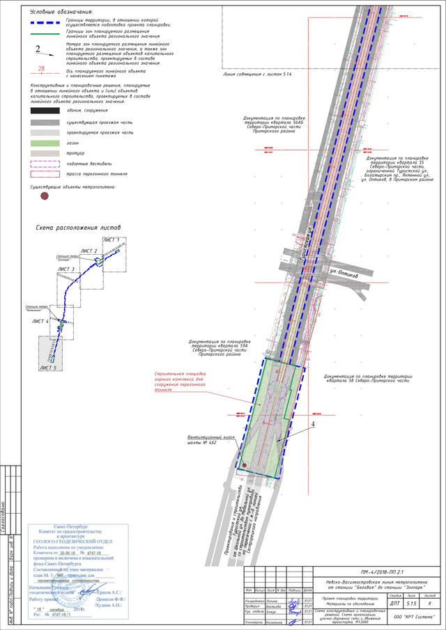 Из проекта планировки с проектом межевания территории для размещения линейного объекта регионального значения «Невско-Василеостровская линия метрополитена от станции «Беговая» до станции «Планерная»