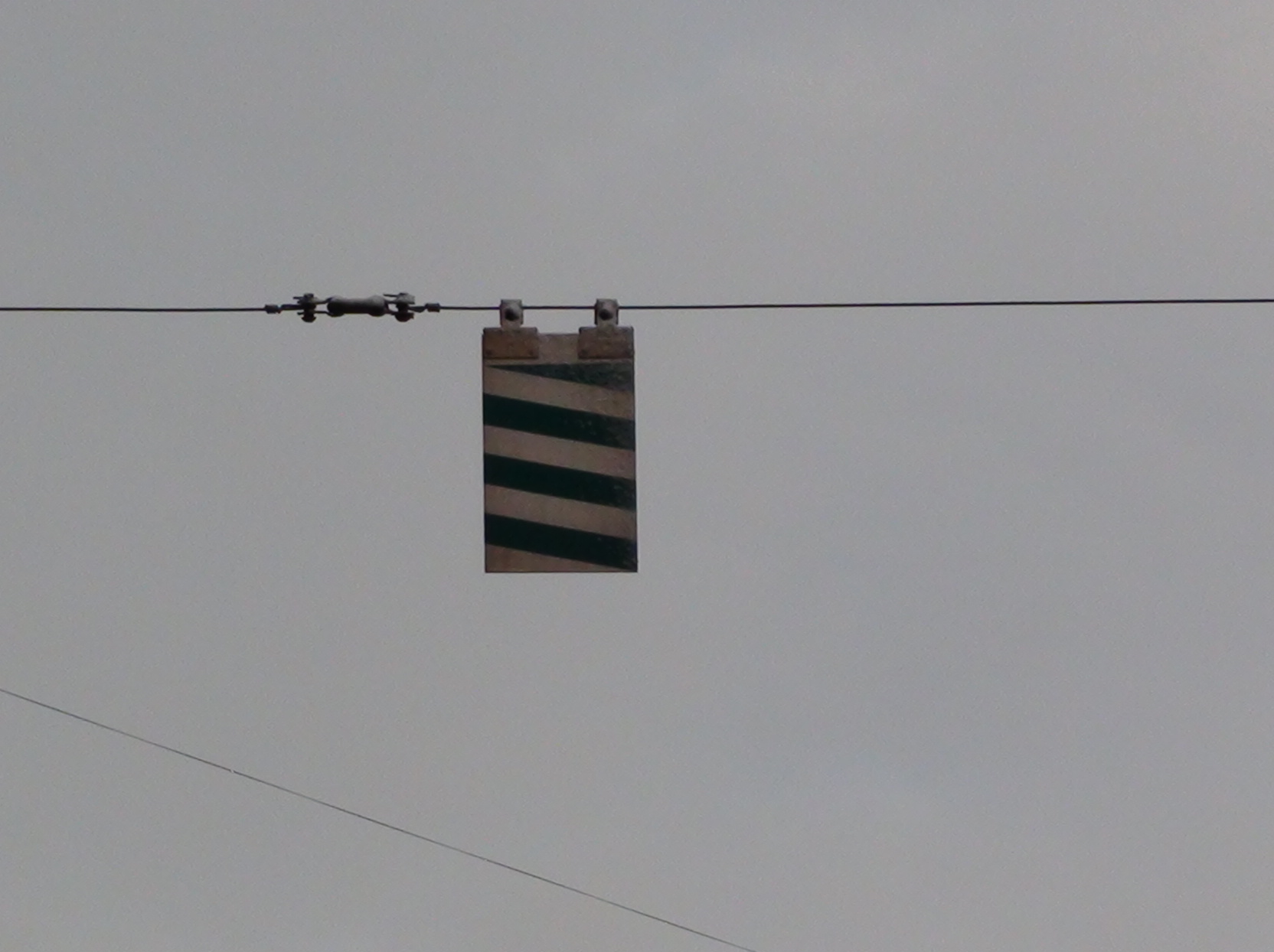 Секционный (участковый) изолятор на контактной сети, водитель должен выключить двигатель и идти "выбегом", по инерции.