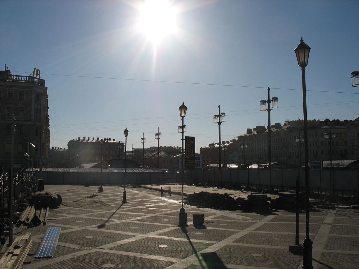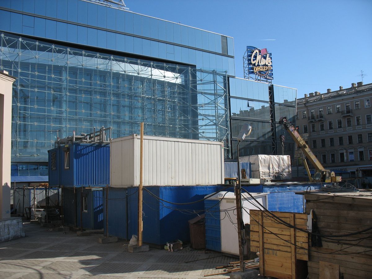Стройплощадка расширилась за счет снесенного павильона. Видимо, готовят площадку для складирования деталей щита заранее. Кстати, остальные павильоны сносить совершенно не спешат, даже на одном сегодня новый кондиционер вешали. Журналисты с заявлениями поторопились явно. Ах да, фотки... =)