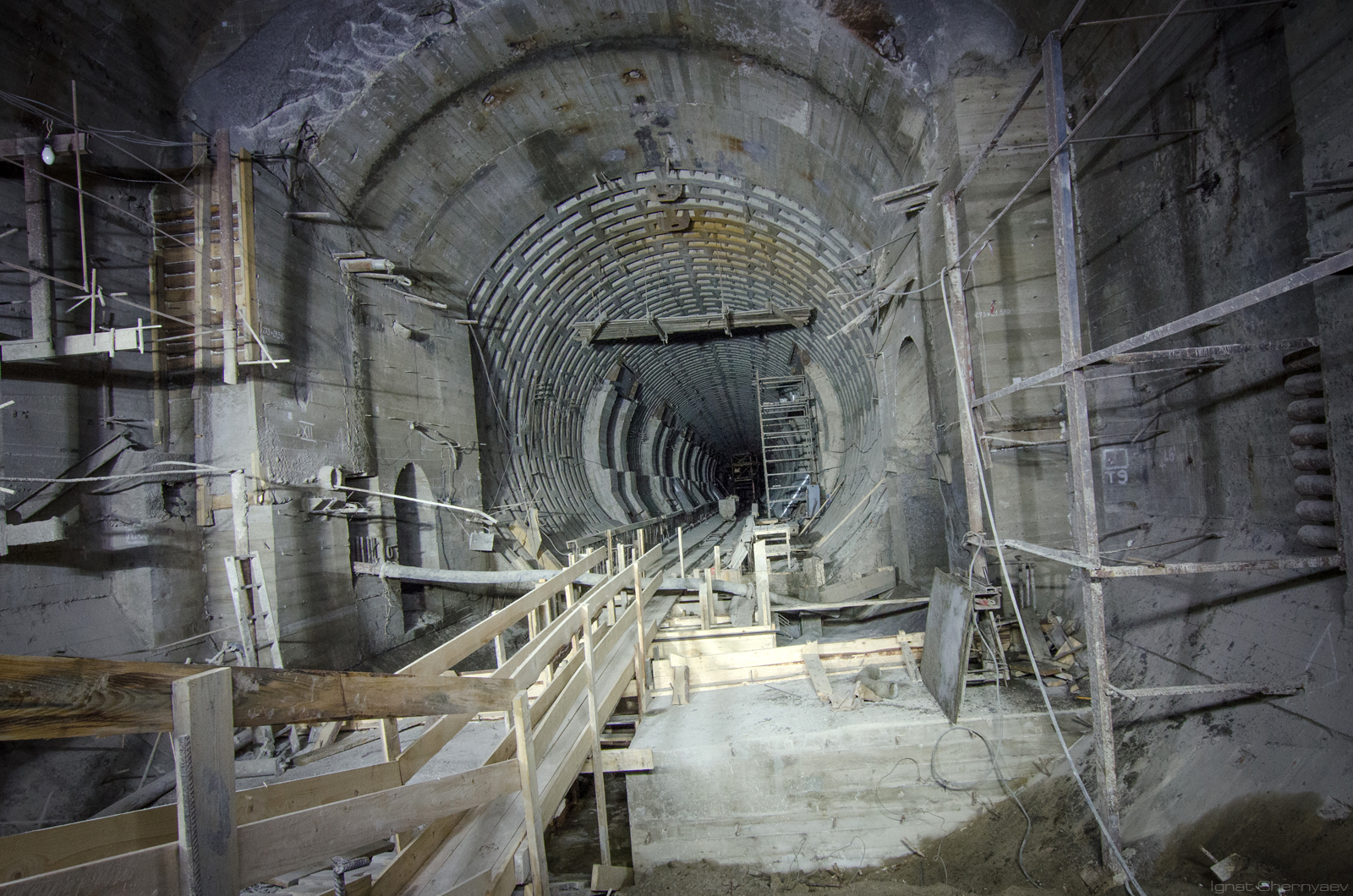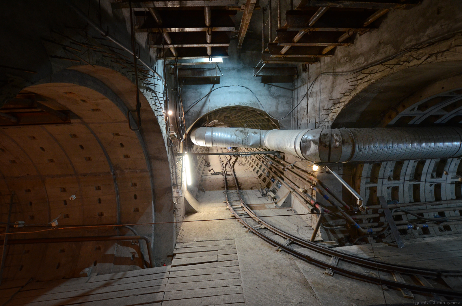 Вскоре? Не думаю. Для того, чтобы эту камеру (лестничного спуска) можно было увидеть из центрального зала, нужно пройти верхний свод на всю длину станции. А его ещё даже не начали (если не считать монтажку для укладчика блоков верхнего свода в зоне натяжной камеры).