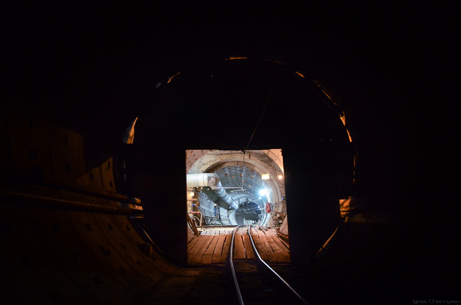 Со стороны натяжной пока только сооружается монтажная камера для укладчика верхнего свода станции. Наверное, скоро сделаю большой пост с фото по всему участку.