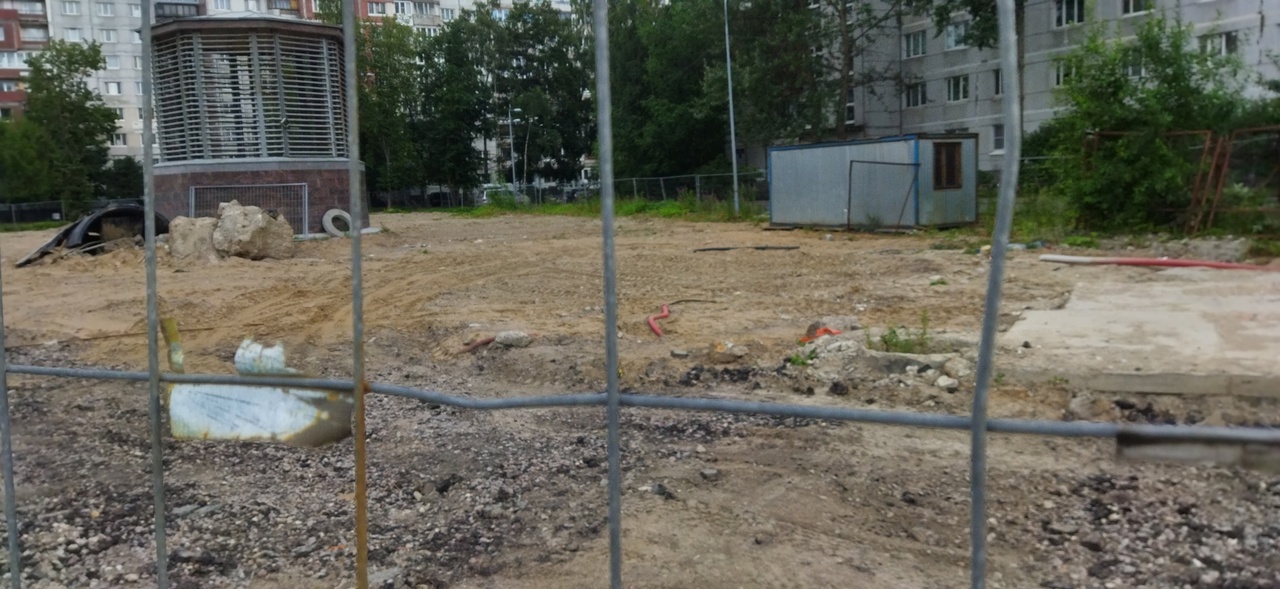В остальном территория, включая бывший карман с тротуаром, напоминает песчаную пустыню с барханами.
