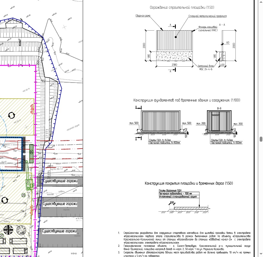 В нем предусмотрено устройство временного ограждения и приведены чертежи данного ограждения Как нарисовано на чертеже так и построили