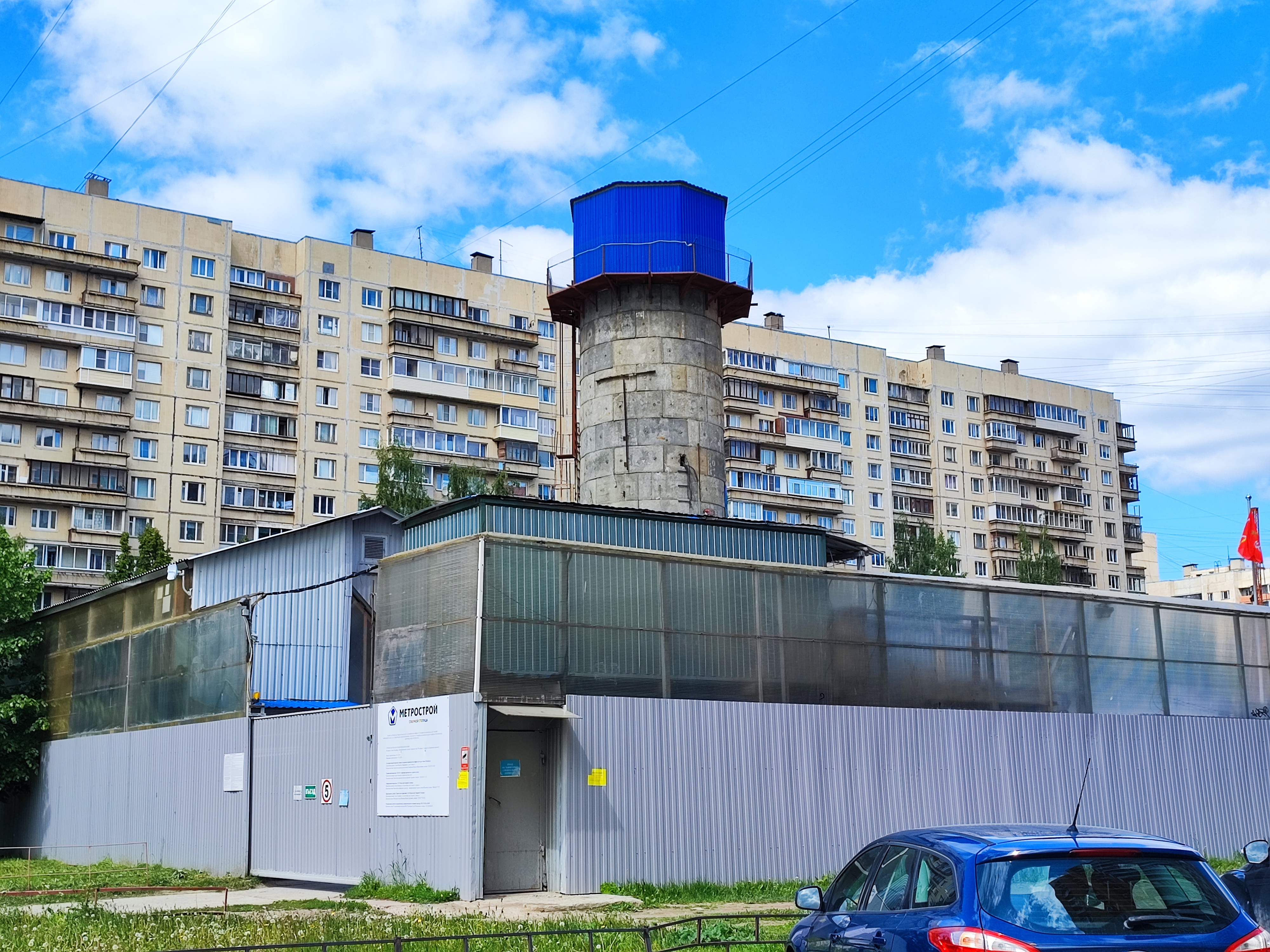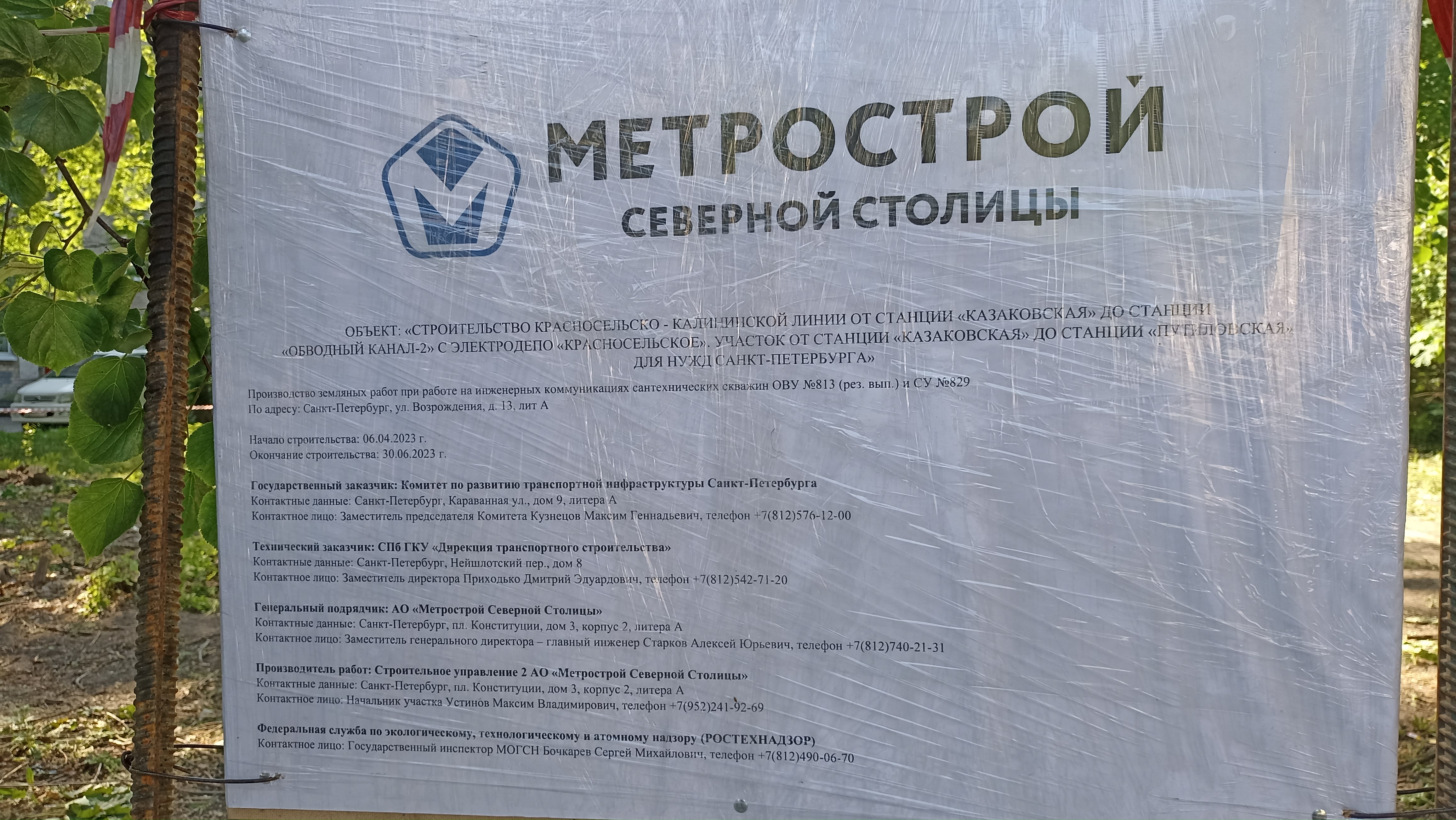 А тем временем Метрострой с опозданием вышел на площадку сантехнической скважины на Возрождения. Согласно их же инфощиту, начать должны были еще в апреле.