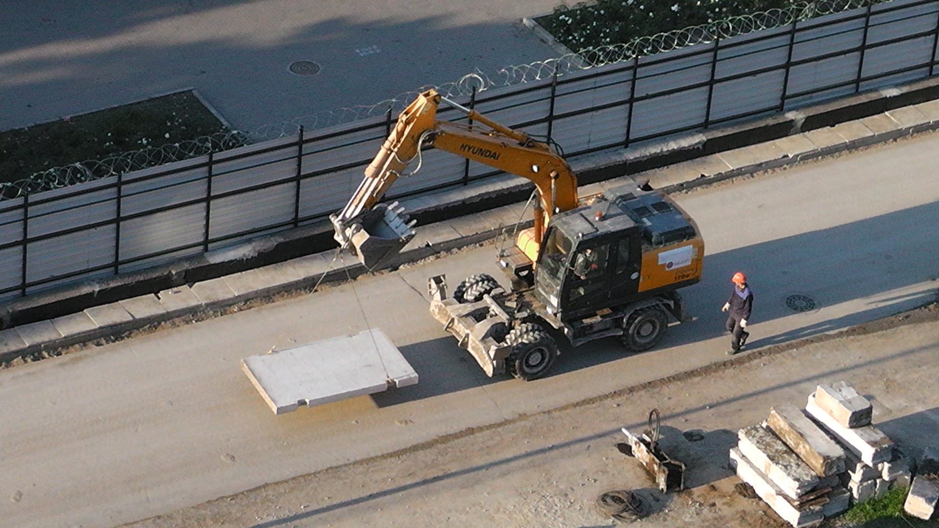 Извиняюсь,если было уже, но вот сегодня, по приезду,из шавермы, у дома по ул. Кораблестроителей 35, обнаружил данный щит с рабочим за ним эскаватором ..