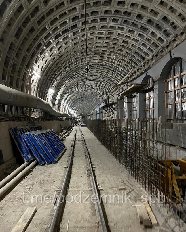 B боковых станционных тоннелях приступили к армированию подплатформенных стен.