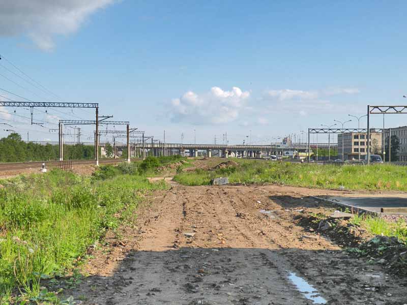 Мы в Купчино, в полосе, смотрим на север. Здесь будет вокзал.