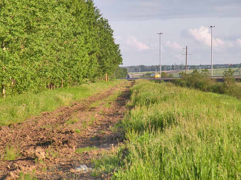 Ну, КАД там чуть дальше. А вот и насыпь уже видна.