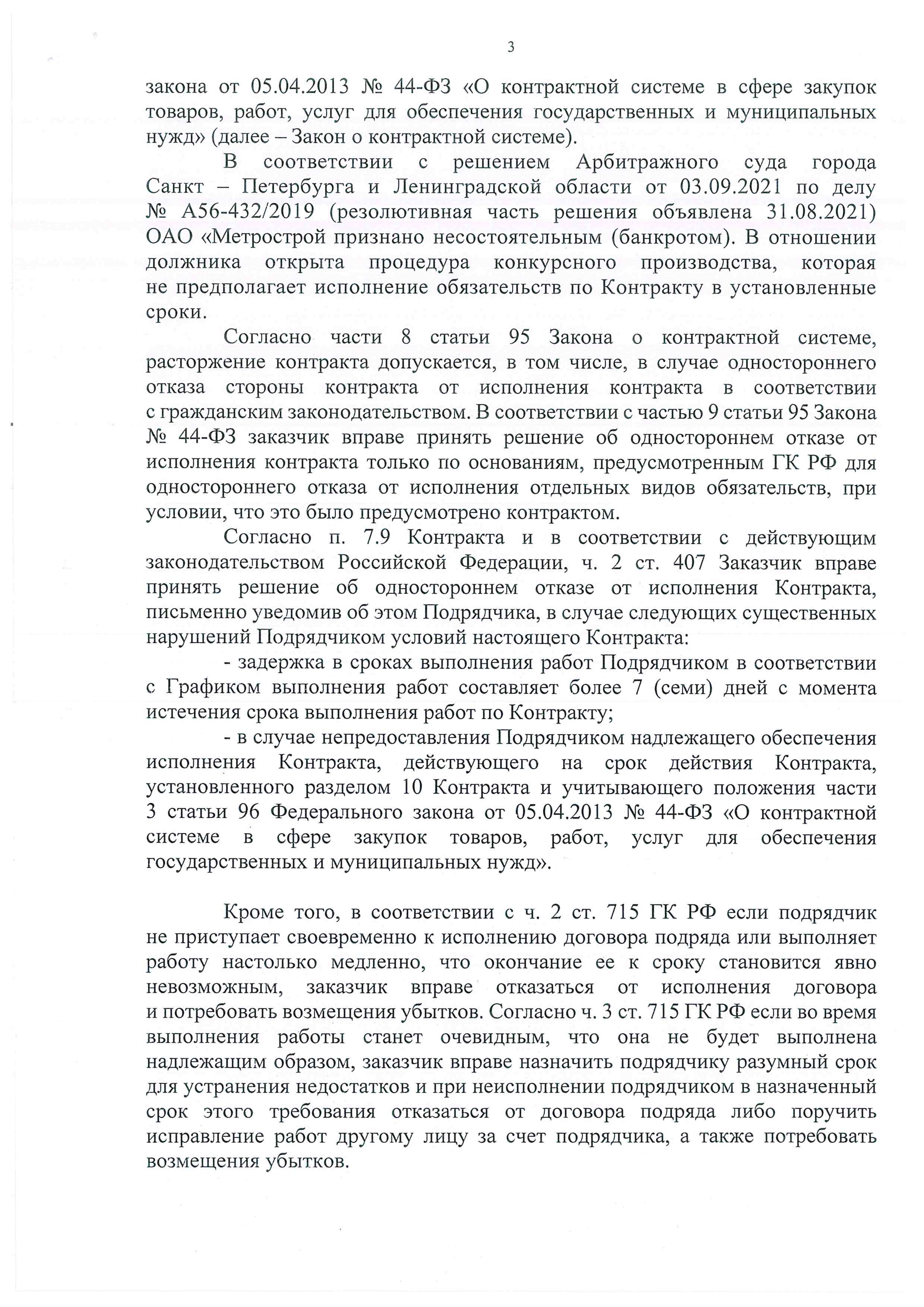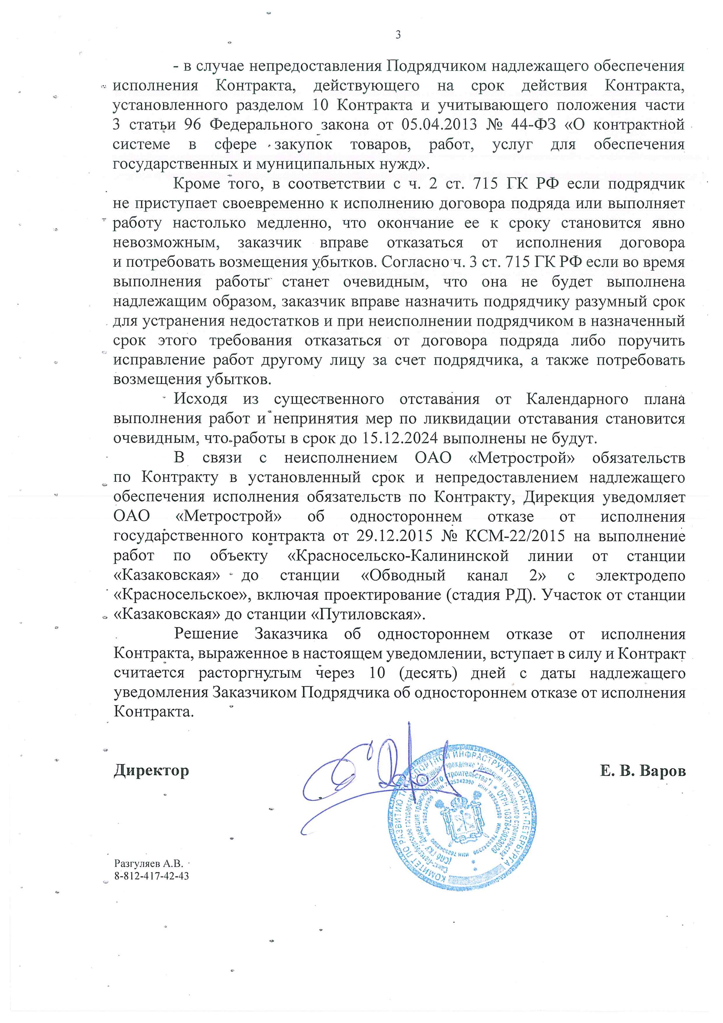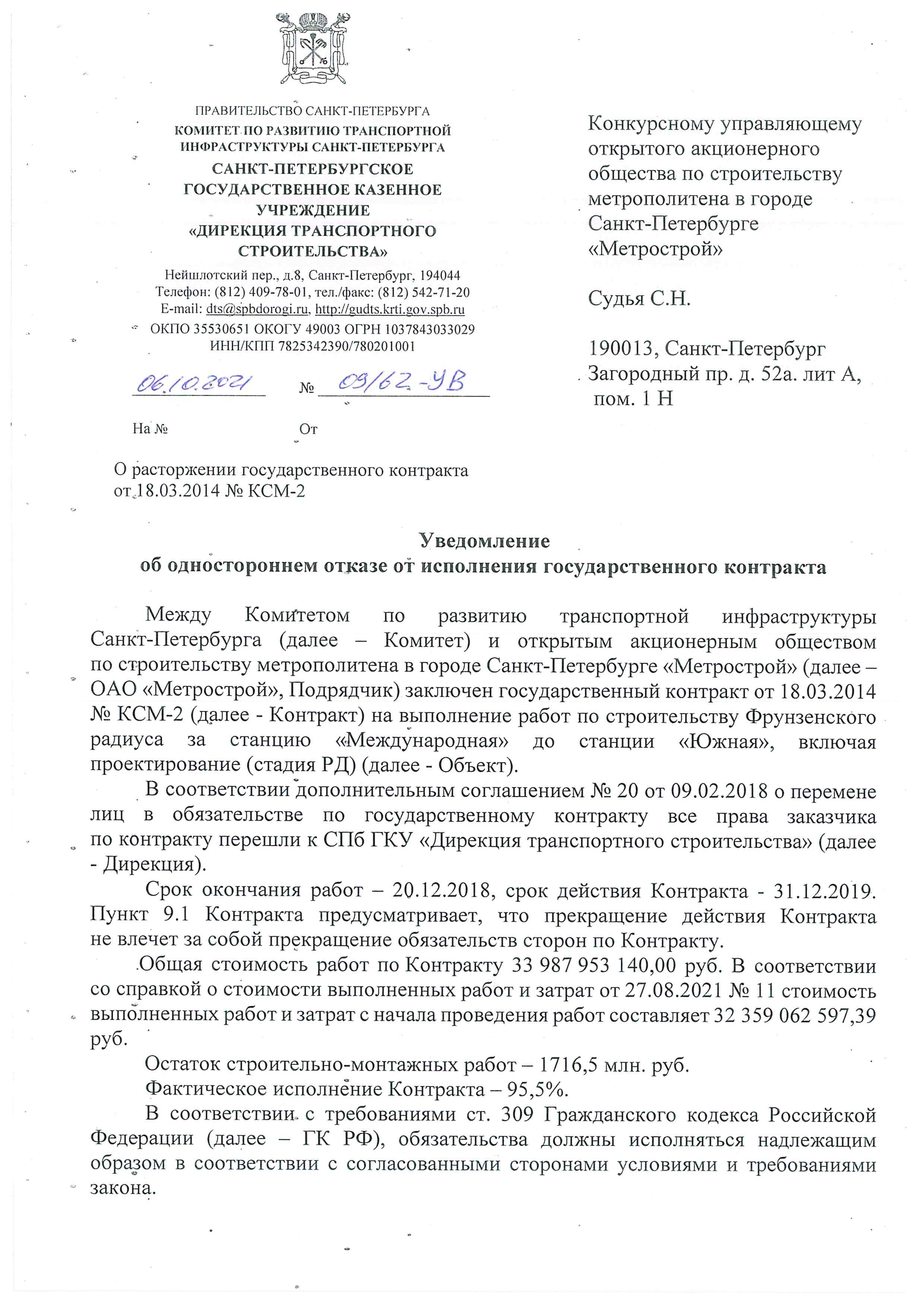 «Фонтанка» писала о том, что Смольный направил восемь писем «Метрострою» о расторжении контрактов, среди которых – соглашение на строительство оранжевой, зеленой, фиолетовой и коричневой линий. Контракт с единственным поставщиком, «Метростроем Северной столицы», предполагается подписать на днях, после совета директоров и собрания акционеров компании.