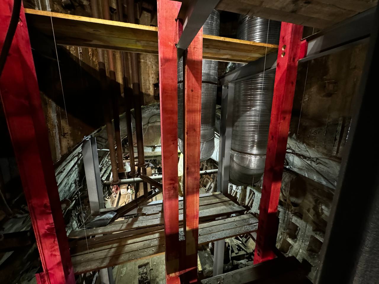 Идёт переармировака ствола шахты № 852. В ней сейчас монтируют деревянные проводники для двухклетевого подъёма: https://t.me/c/1792427918/51228 (из комментов в канале Подземника).