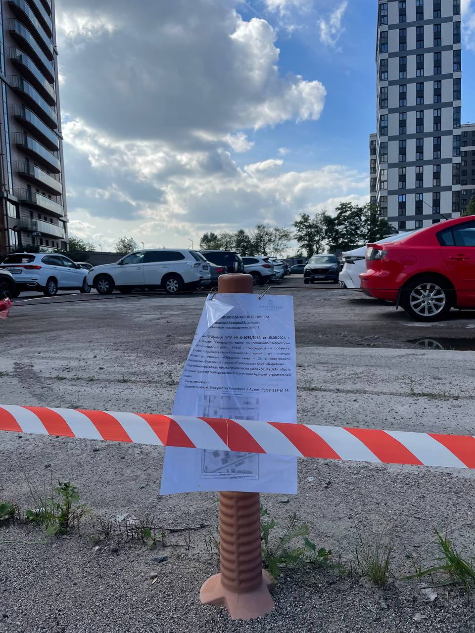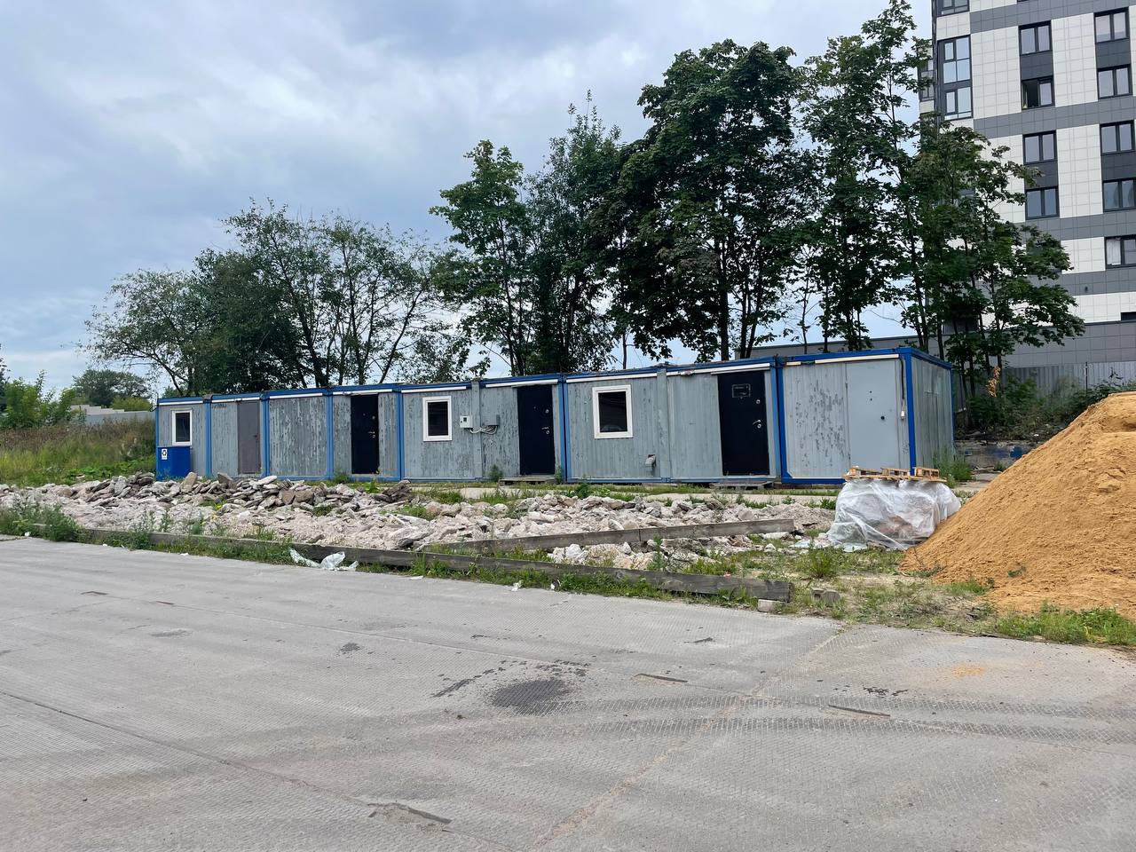 На площадку продолжают завозить строительные контейнеры, а также была огорожена территория и развешены сообщения с просьбой освободить место от автомобилей.