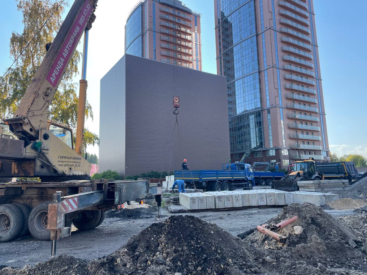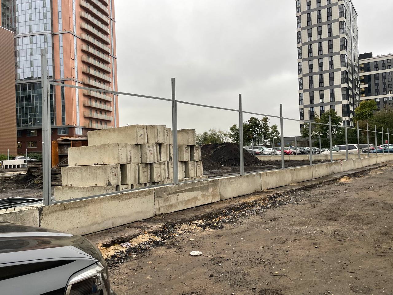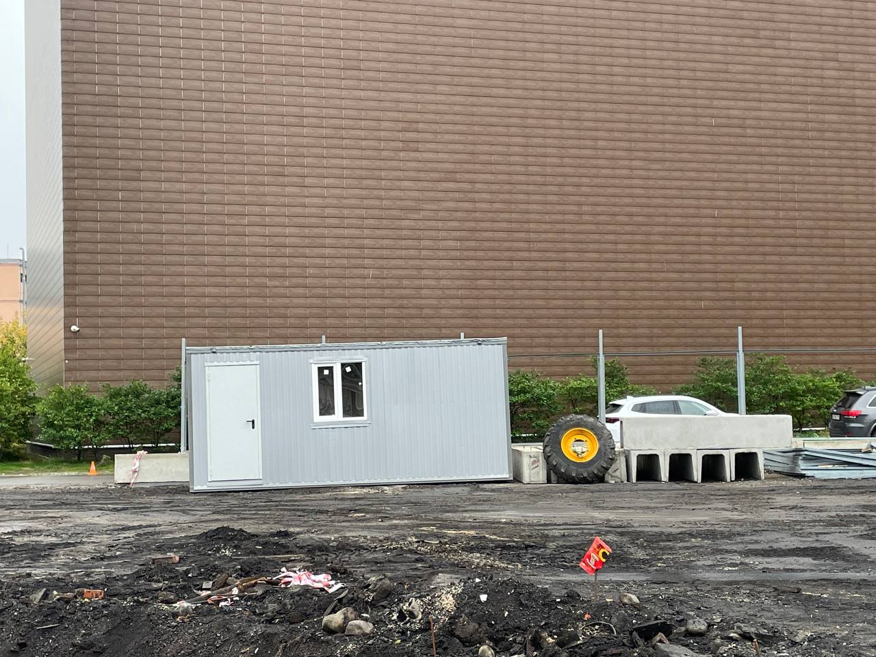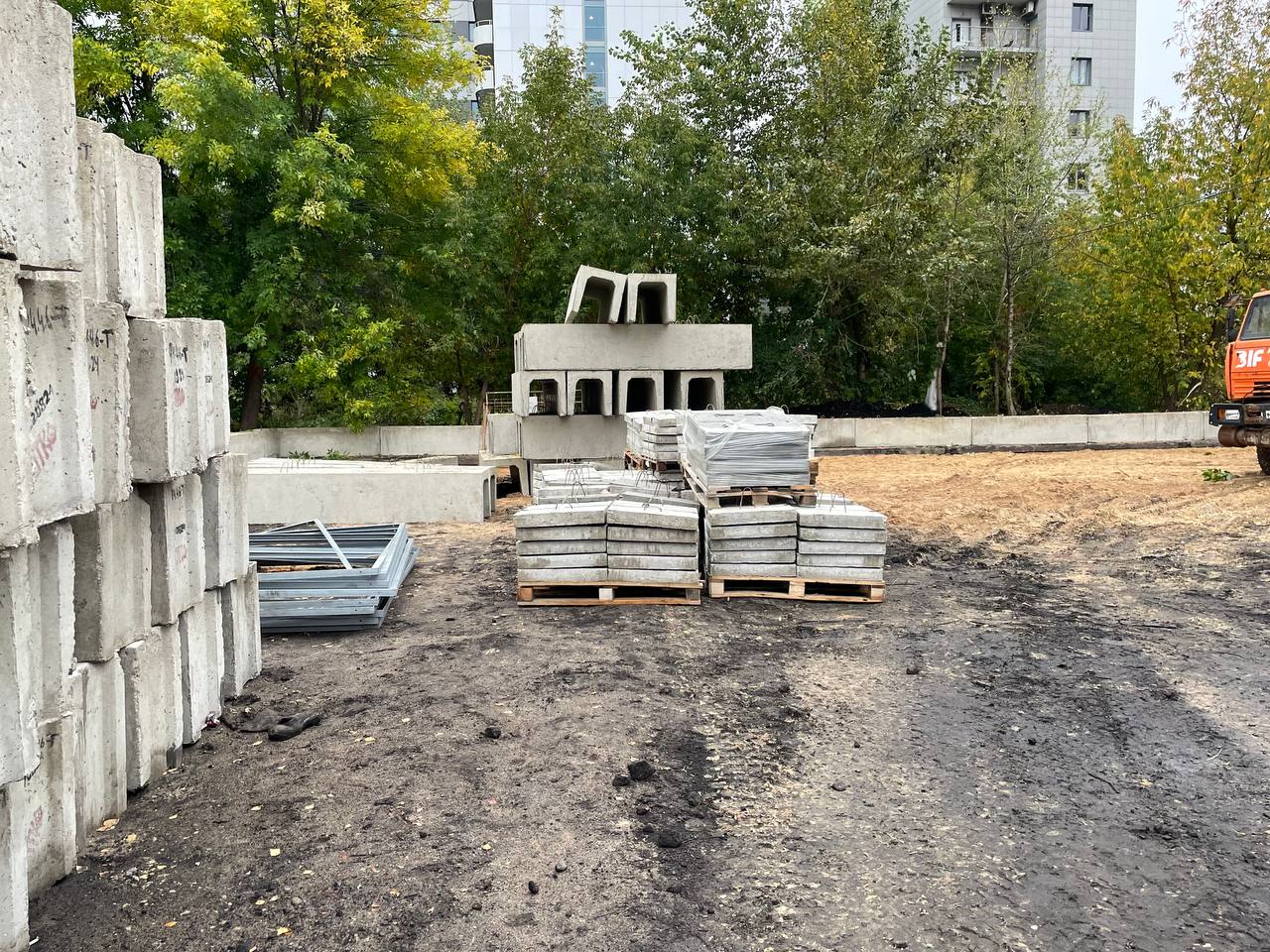Также продолжается устройство площадки. Довозят бетонные блоки ограждения и само ограждение. Сегодня завезли вагончик-КПП.