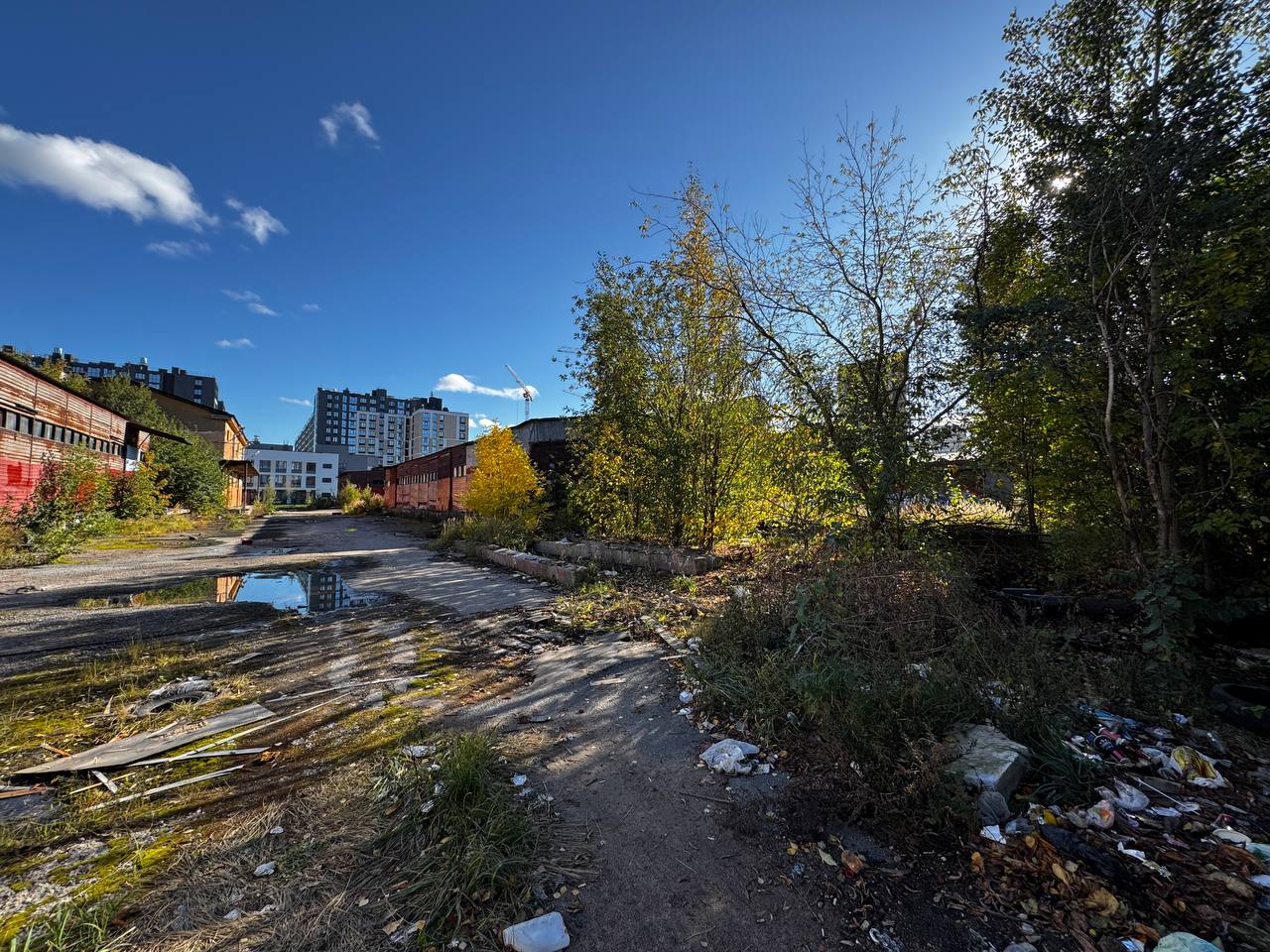 Хочется сохранить для истории вид территории будущей строительной площадки шахты № 850 и вестибюля станции «Боровая» перспективного участка Красносельско-Калининской линии Петербургского метрополитена в начале октября 2024, до начала работ. Скорее всего, к следующему вегетативному сезону многие из растений на фото будут снесены.