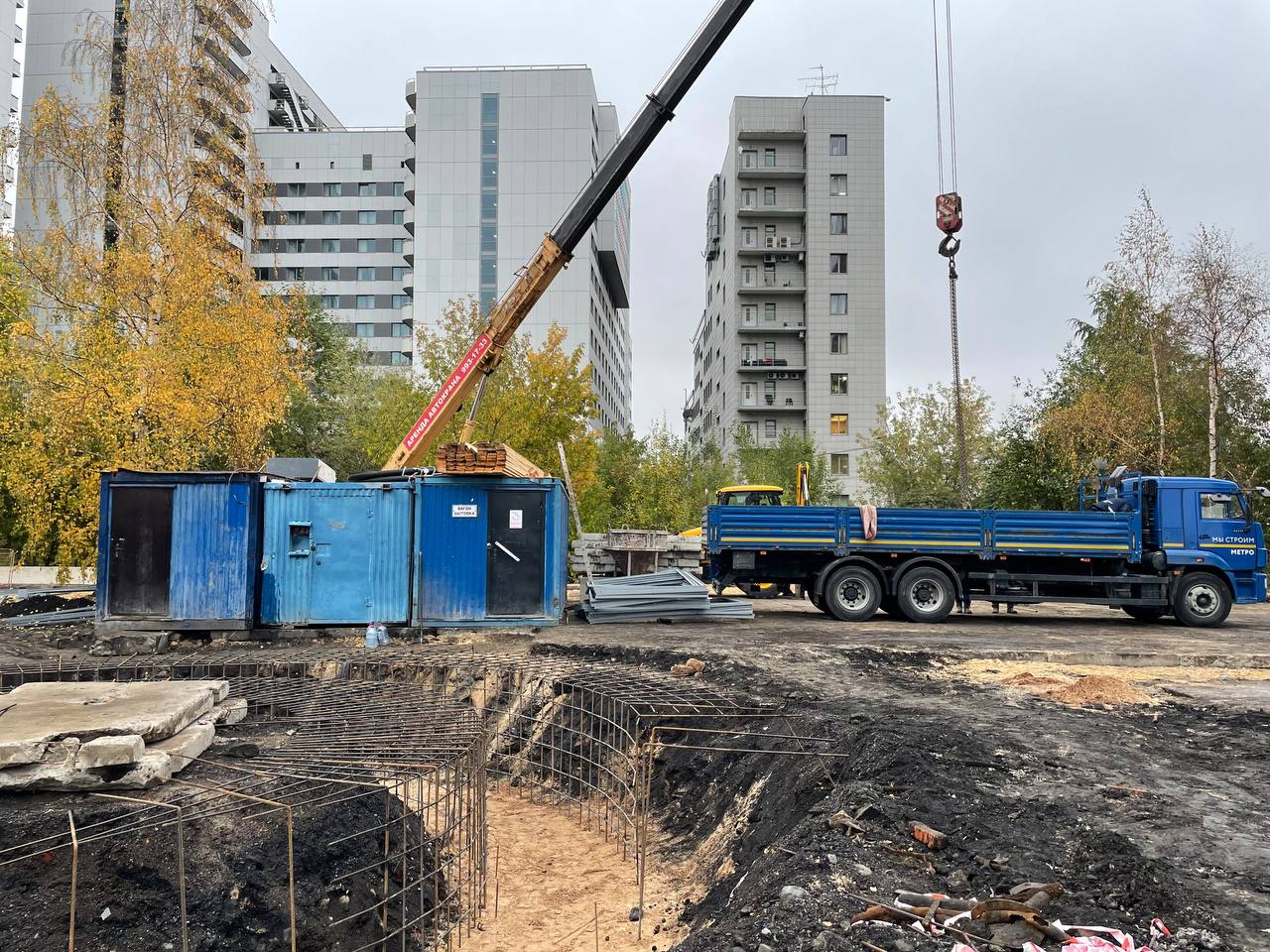 На шахте 848 Красносельско-Калининской линии метро СПб продолжаются работы по устройству строительной площадки.