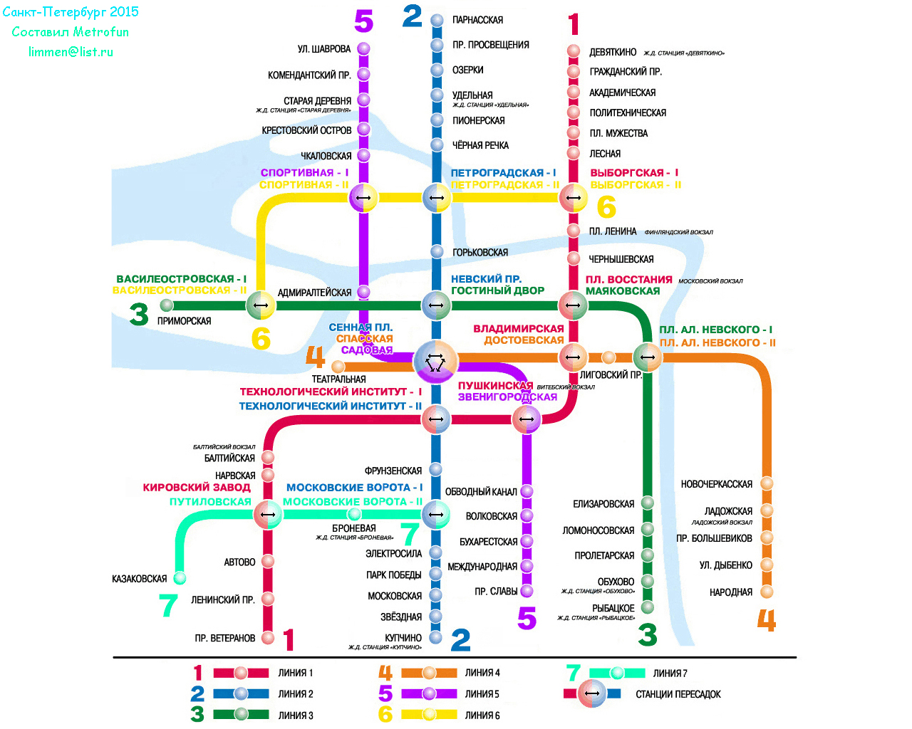И еще, по-моему, кольцевую принято считать линией 7 (и обозначать или тёмно-синей, или коричневой), а ККЛ - линией 6; московские ворота - 2 называть Черниговской, Выборгскую-2 - Сампсониевской и Петроградскую-2 - Ботанической (Ваську-2 иногда именуют Средним Проспектом). Ну и на Генплане еще присутствуют Долгоозёрная и Введенская (хоть тут и принято считать, что, по крайней мере первую из них строить не будут точно, но нигде кроме этого форума эти станции не выносились из планов).