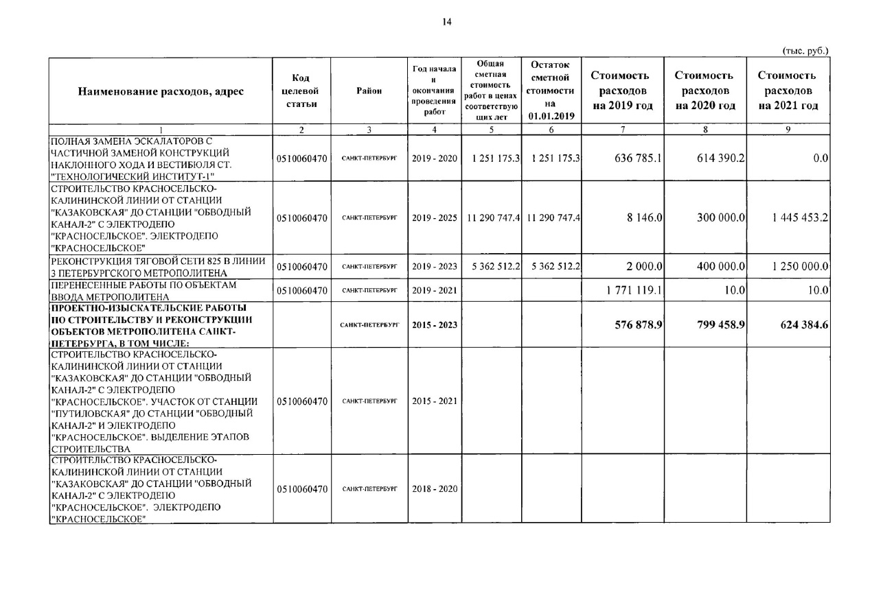 - уменьшено финансирование в 2019 году строительства участка "Казаковская"-"Путиловская" с 6,453 до 4,328 млрд. руб.;