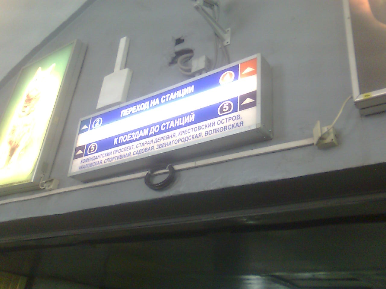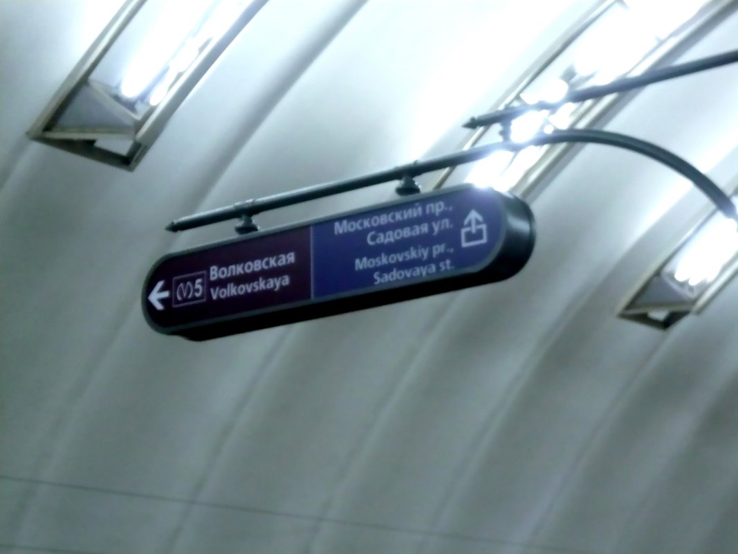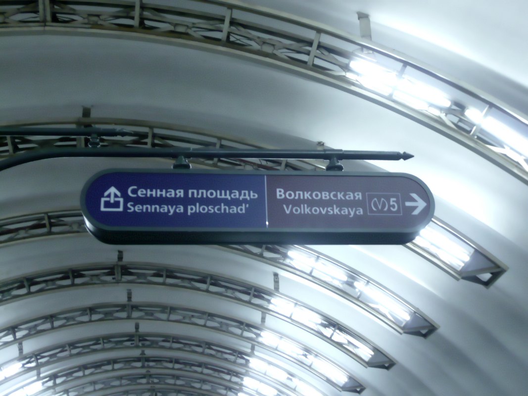Да нет, снято с двух сторон (указатель на Волковскую на одном кадре - направо, на другом - налево). Очевидно, указатель на Сенную (станцию) перепутали с указателем на выход в город на Сенную площадь. Либо указатель на МПЛ будет установлен позже.