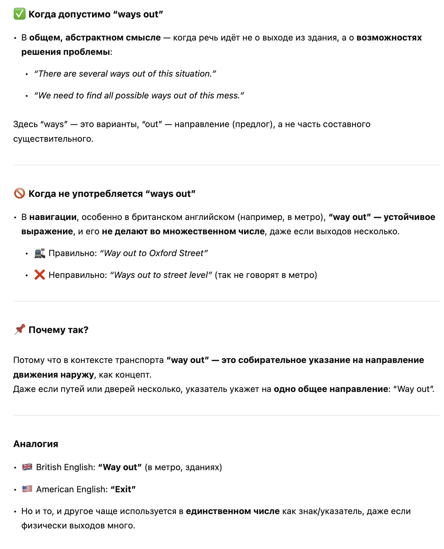 Очень уж мозолило мне глаз это Ways Out. Потому как это собирательное наименование. Как «деньги», например. Но подумал, может, это я дурак и ничего не понимаю. Поэтому даже спросил у ChatGPT. Был ответ: