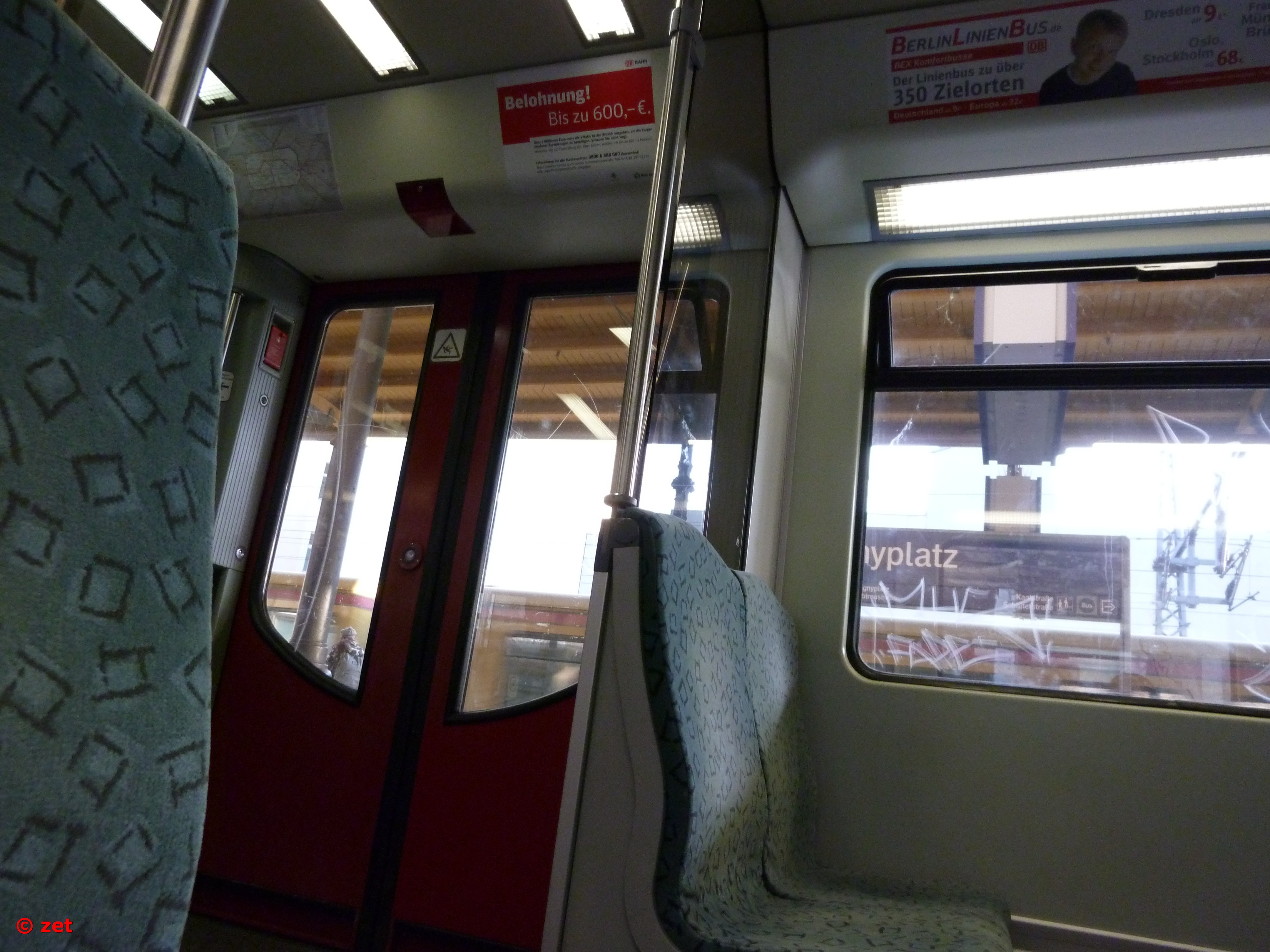 В салоне электрички S7. Станция Savignyplatz. Двери открываются по требованию (кнопка на двери)