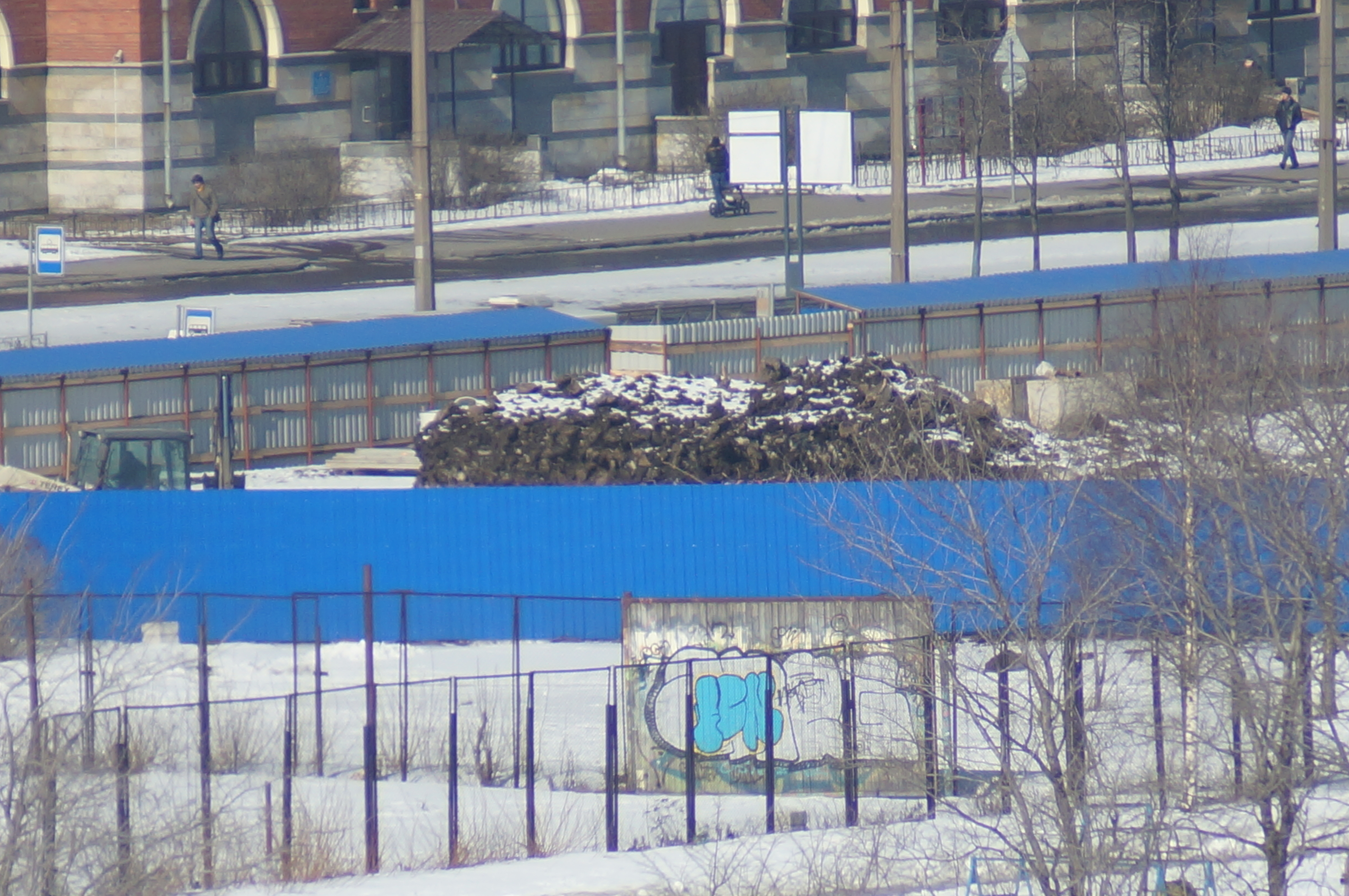 Вспомнил, что у меня есть телевик, да ещё и погода хорошая. Извиняюсь, если что, за качество - высокого штатива не имею, а руки очень трясутся :( Северную строительную площадку не достать - загорожена деревьями.