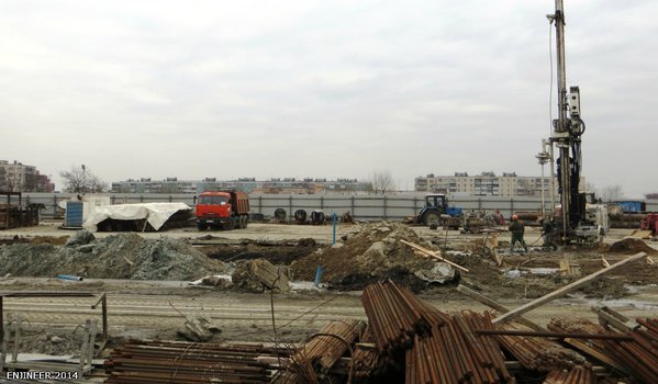 Идет сооружение ограждения котлована, строят эстакаду для тельфера как я понял, рядом с домиком. Работы иногда идут круглосуточно. Пока всё.