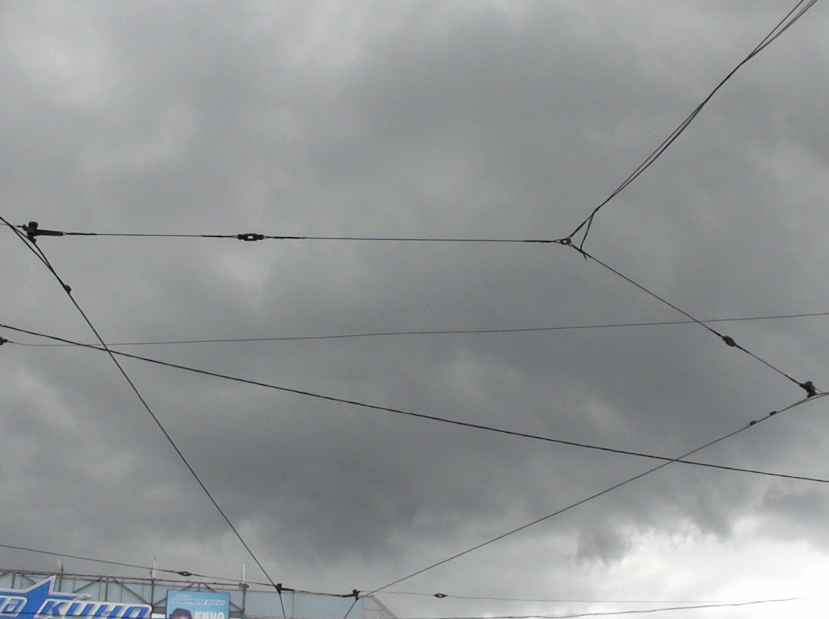 Сегодня снова там был. Ощущение, что в КС. На среднем снимке тянется снизу вверх, задевая какой-то ещё провод. След заканчивается на какой-то связке (самое верхнее фото, идёт с верхнего правого угла к кружку и всё, дальше провода больше нет). Кстати, этот кружок соединяет две действующих КС трамваев. Точнее не понять куда. Судите сами по фоткам: