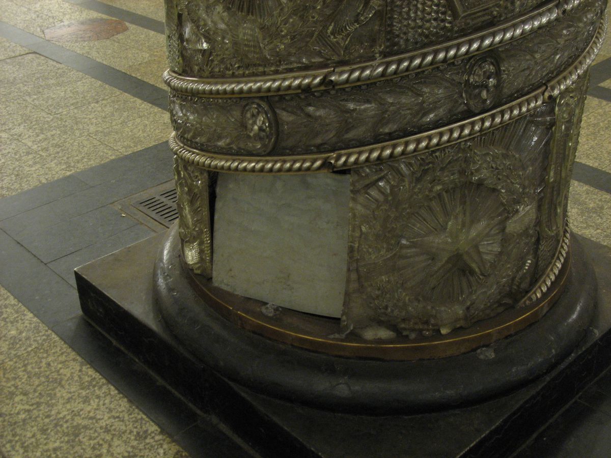 Сегодня был там - как минимум на трех колоннах повреждена нижняя часть, в одном месте стеклянный блок вообще отсутствует