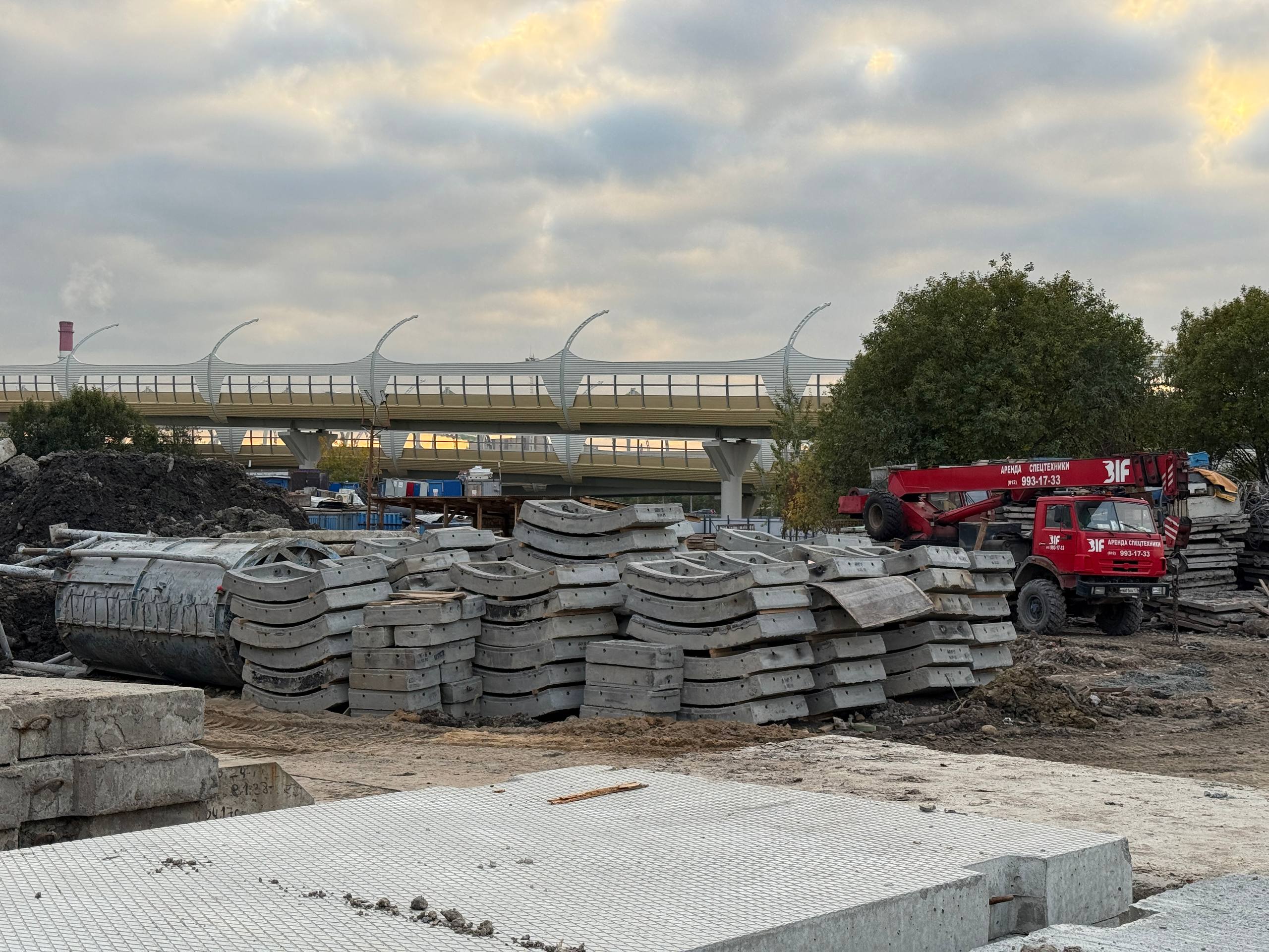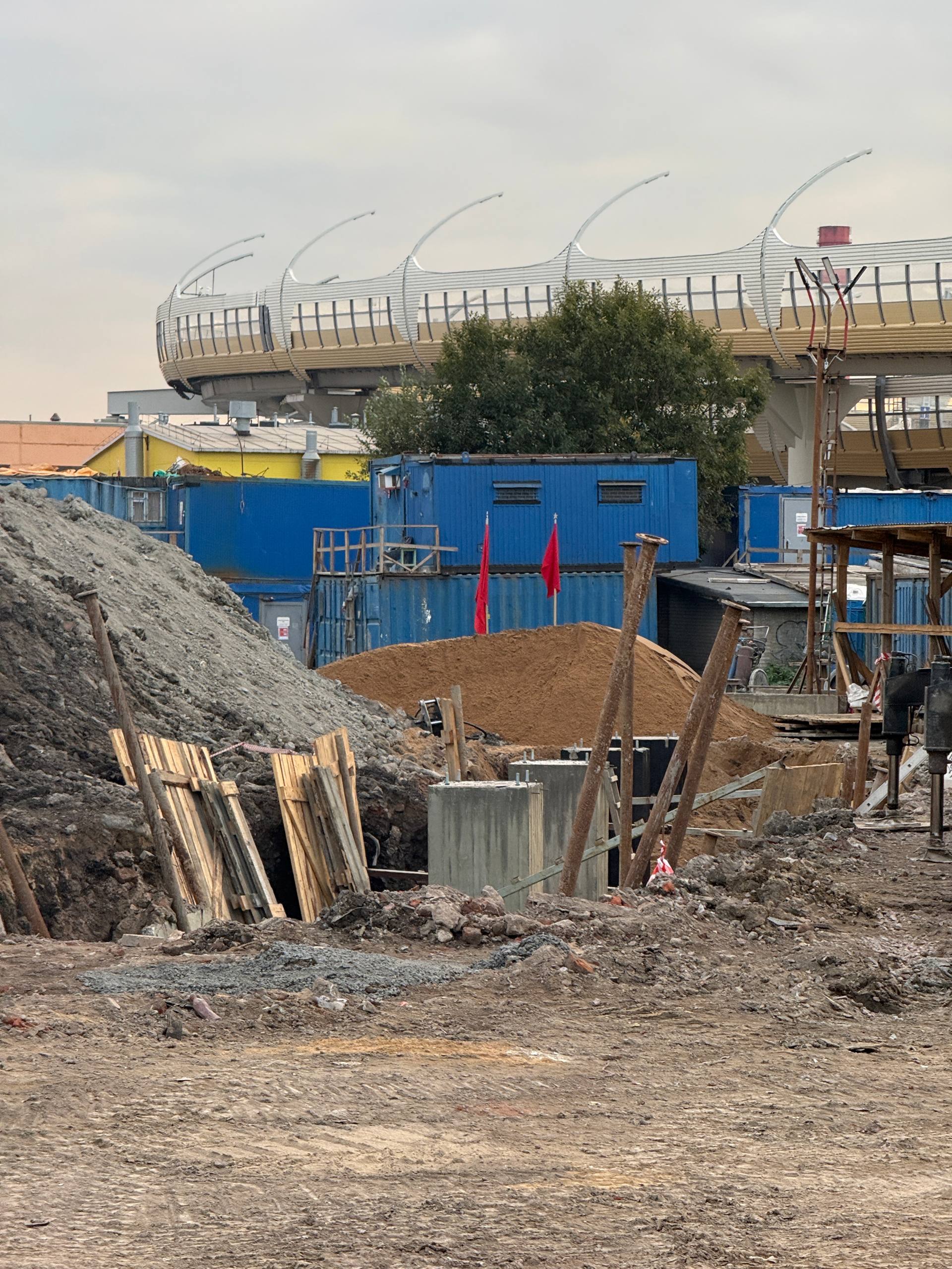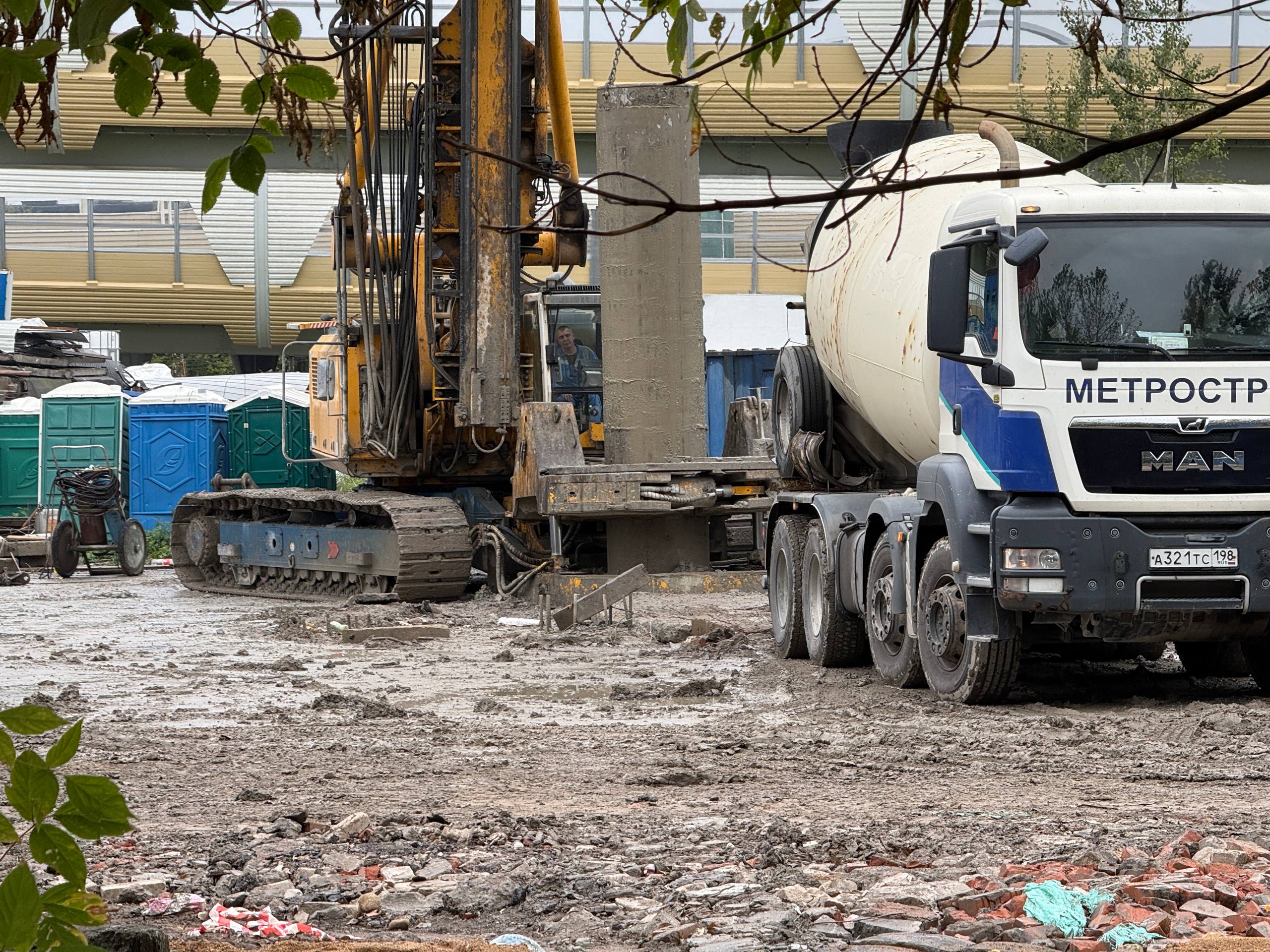 Также продолжается выработка грунта. Это можно понять по железобетонным блокам