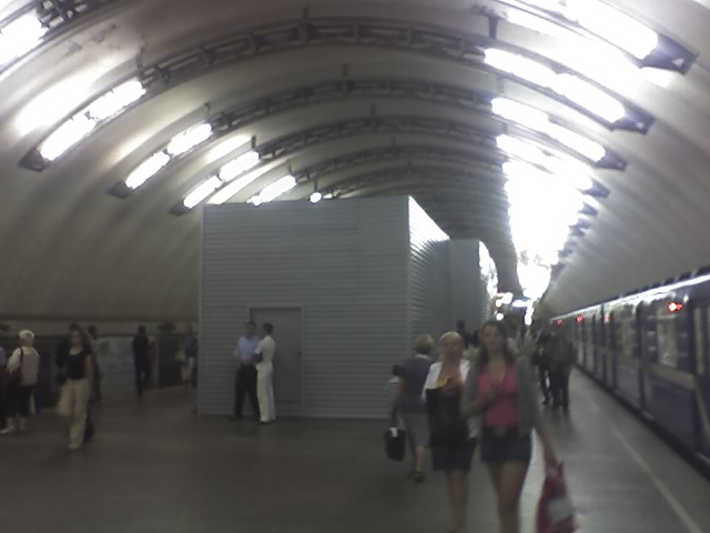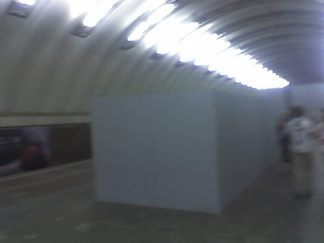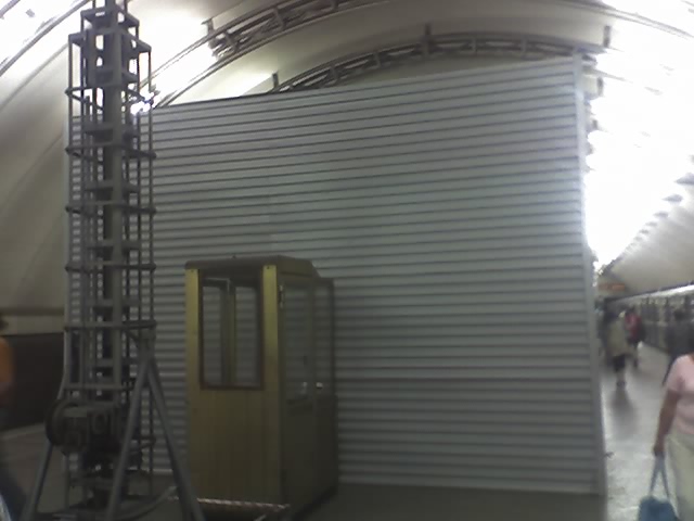Сегодня уже установили нехилый каркас из 70-100мм(?) швеллеров. Надеюсь, этот каркас временный, и не является элементом перехода. Ксати, м.б. Paruv подскажет нам - как будут выглядить спуски в переход. Как на Гостинке в центре зала, или что-то другое?