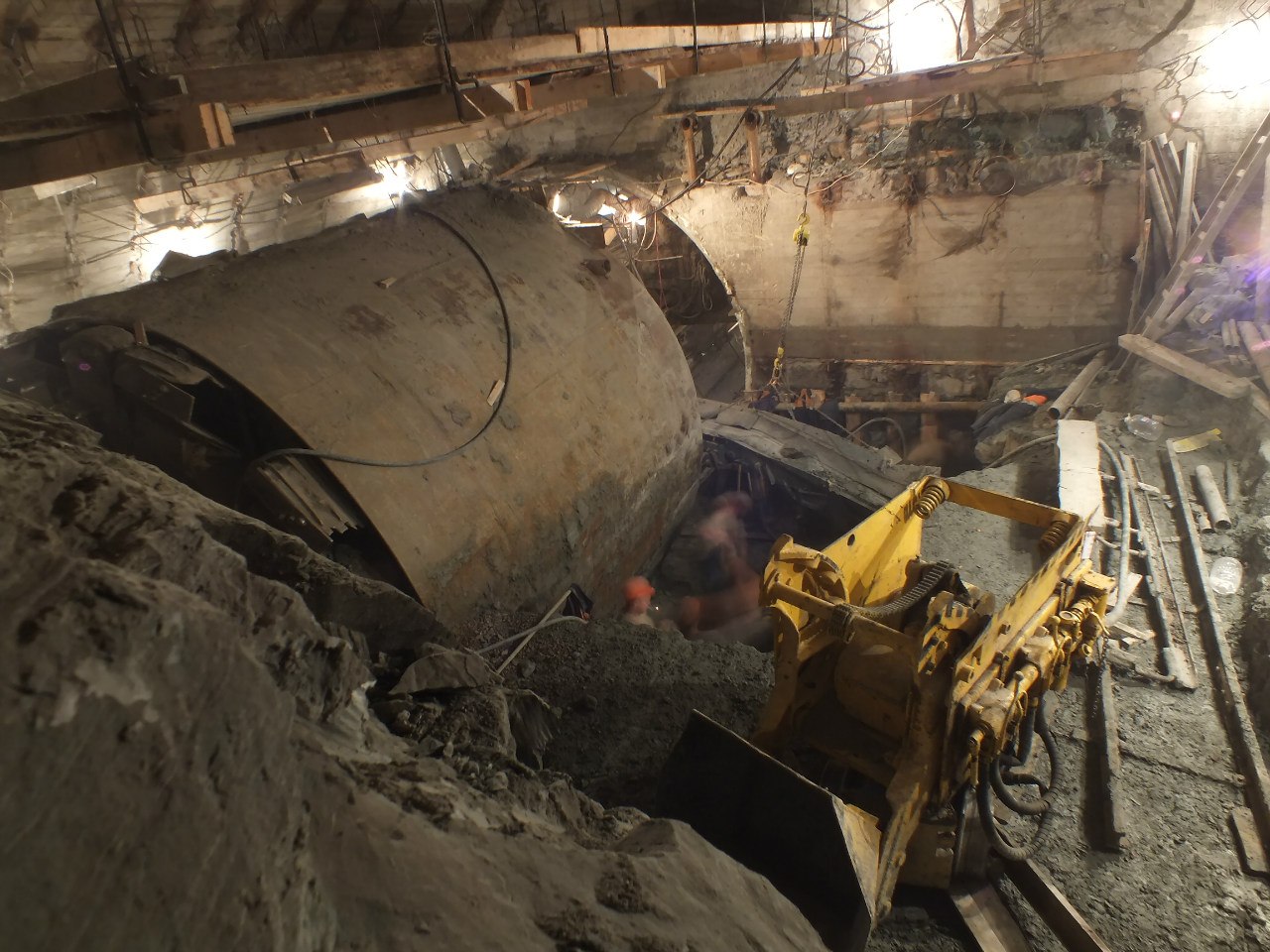 А вообще - хорошо, что порода сухая, плотная. Но с другой стороны - пыльно. Тяжелый труд - щит вручную откапывать...Когда, примерно по срокам, разберут щит и начнут 16 метровую? Понятно, что спешить особо некуда, но...