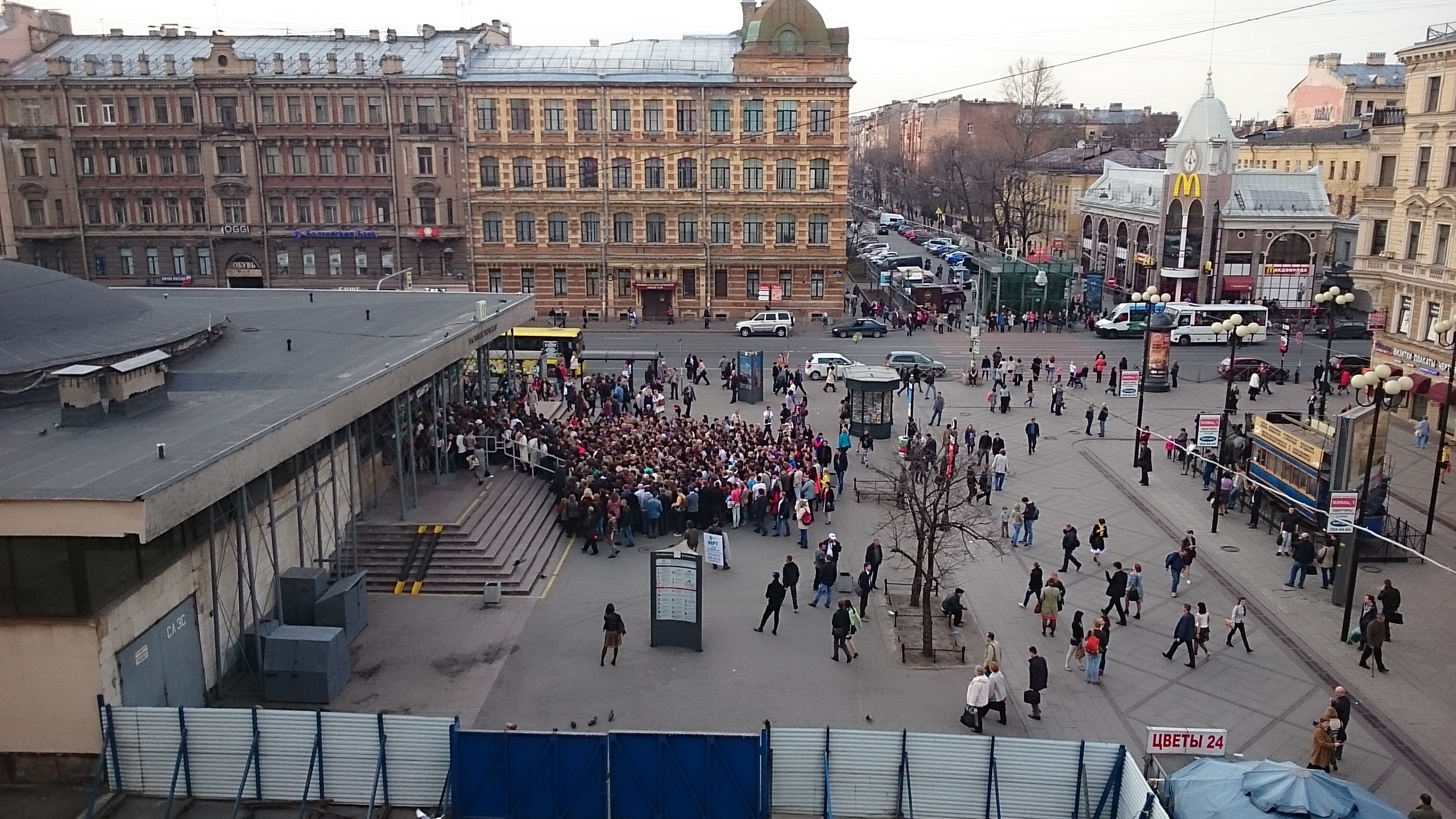 Азарт какой-то появился. Дядечка с усами из нашего оцепления проорал «Держать строй! Сынки! Если выживем, дам три дня на разграбление.». Кто-то из толпы проорал в ответ «Это СПАРТА!». Народ начал смеяться. И тут нас выплюнуло на эскалатор, давка кончилась!