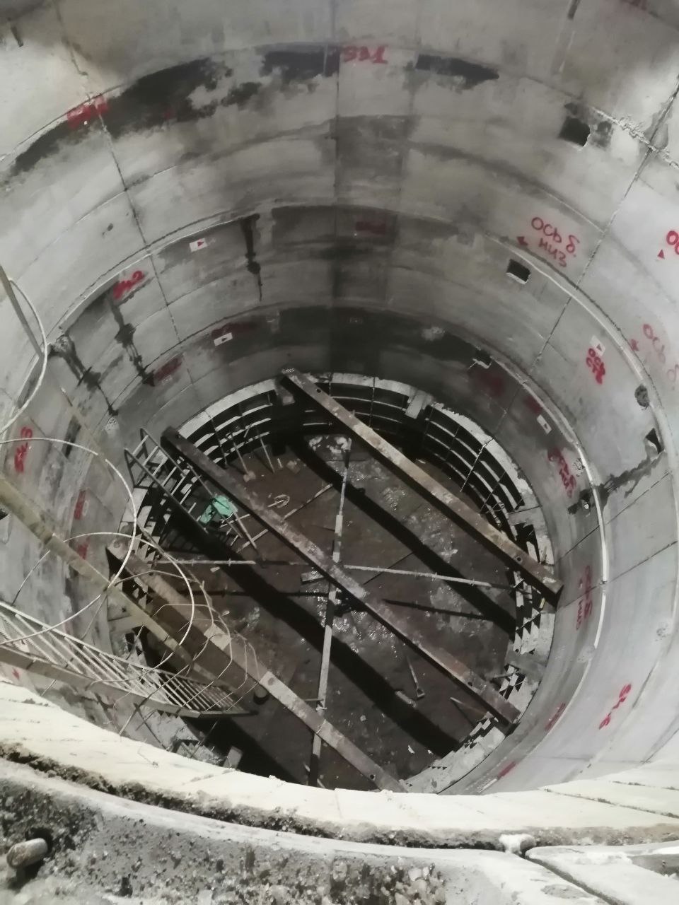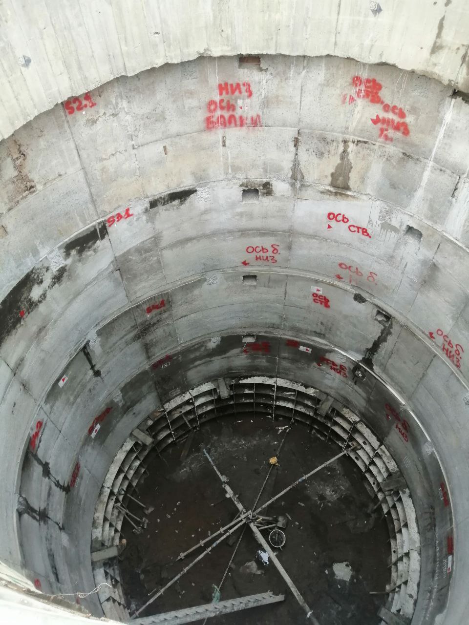 846 шахта. Пройдены 5 заходок. На втором фото "начало" копра. На третьем - установлены балки под монтаж проходческого полка.