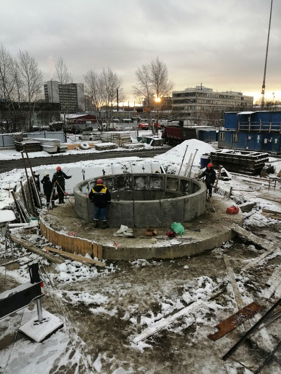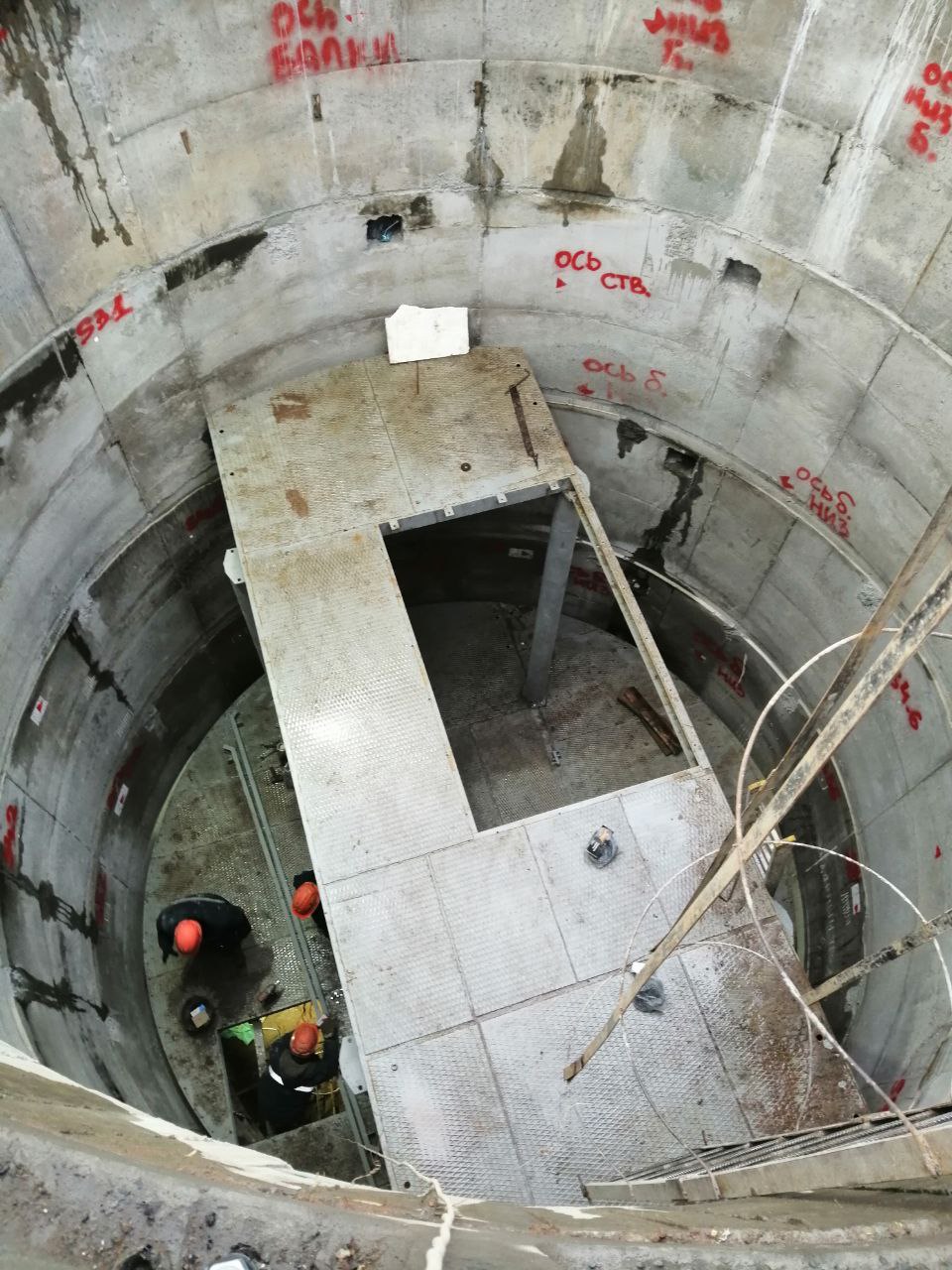 А вот и собранный полок. Поднят для сборки второго кольца копра и нулевого перекрытия.