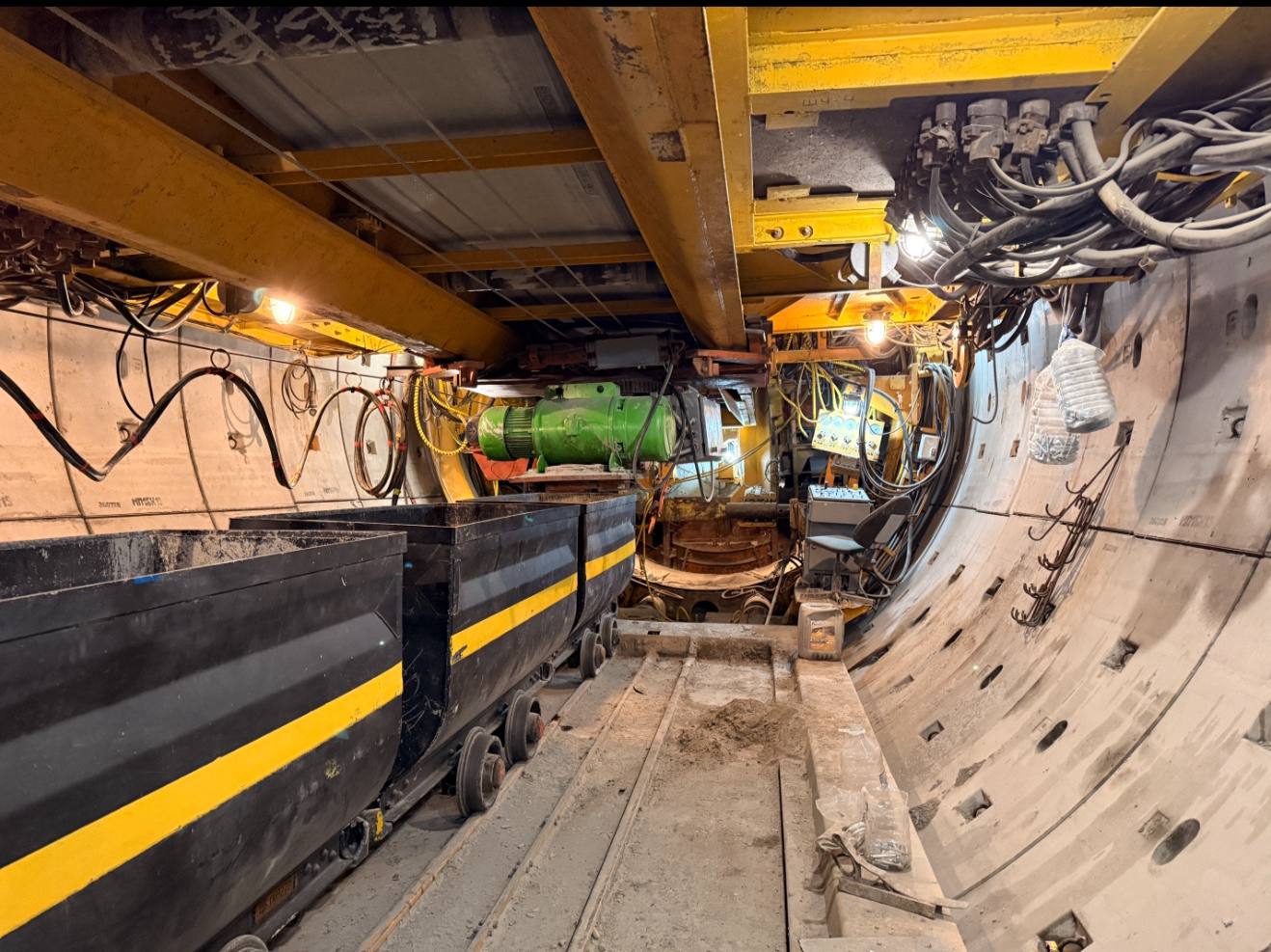 Ладно, понятно, что и два щита и забой монтажной камеры и ещё может какой открыли. Но если хотят что-то построить в 2028 - надо ускоряться. Тем более до конца тупика абсолютно ровный прямой участок. Может 849 сделать рабочей для перехвата щитов и начала строительства "Боровой"? Она большая, 6 метров. Или узкую 853 задействовать? Бывал когда-нибудь вообще одноклетьевой подъëм в узких шахтах, без лесоспуска?