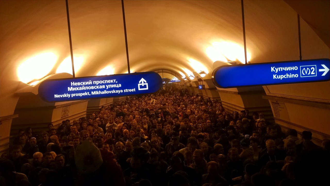 А все упорно ломились на "Канал Грибоедова" (там работало только два пересадочных эскалатора), в то время как выходы на Гостинку и Михайловскую были относительно свободны.