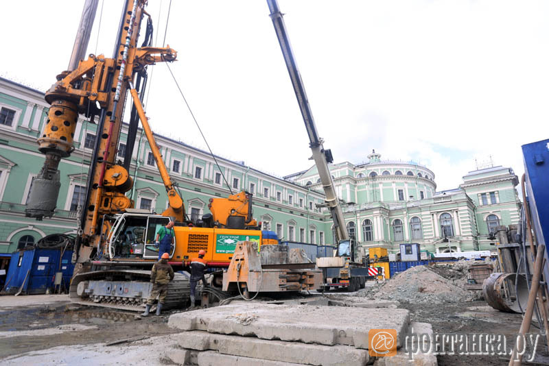 На случай серьезных заторов рядом, под стенами Мариинского театра, появится специальный накопитель, в котором можно будет временно складировать до 300 кубов земли.