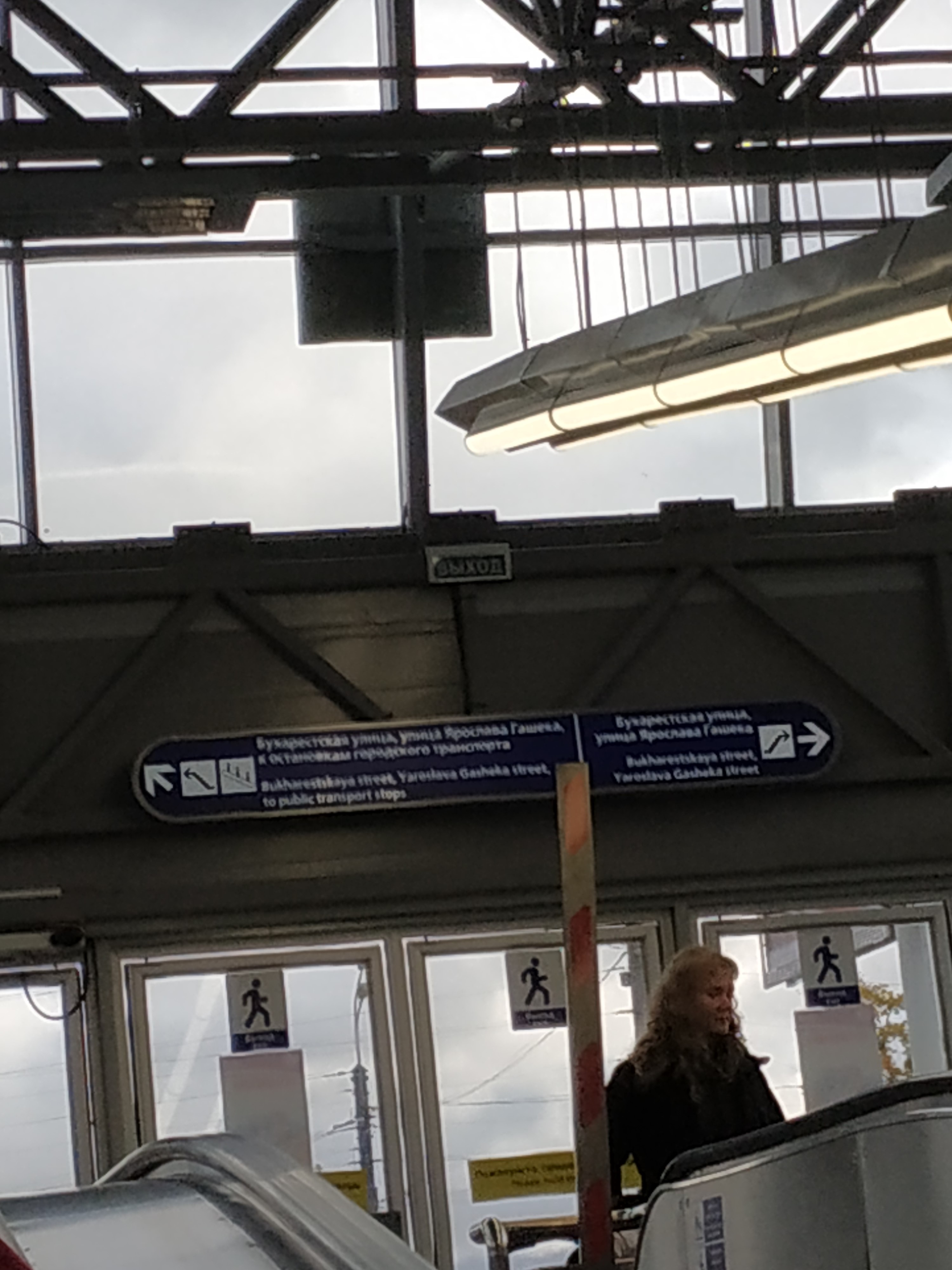 2) наверху "к остановкам ОТ" написано ТОЖЕ в обе стороны, это уже прямая дезинформация. Ладно, согласен, на Бухарестские выходы эту надпись можно было бы и оставить) но сочетание Бухарестская/Гашека БОЛЕЕ информативно, чем Бухарестская/НОТ. А на Гашеко-Дунайских она зачем?