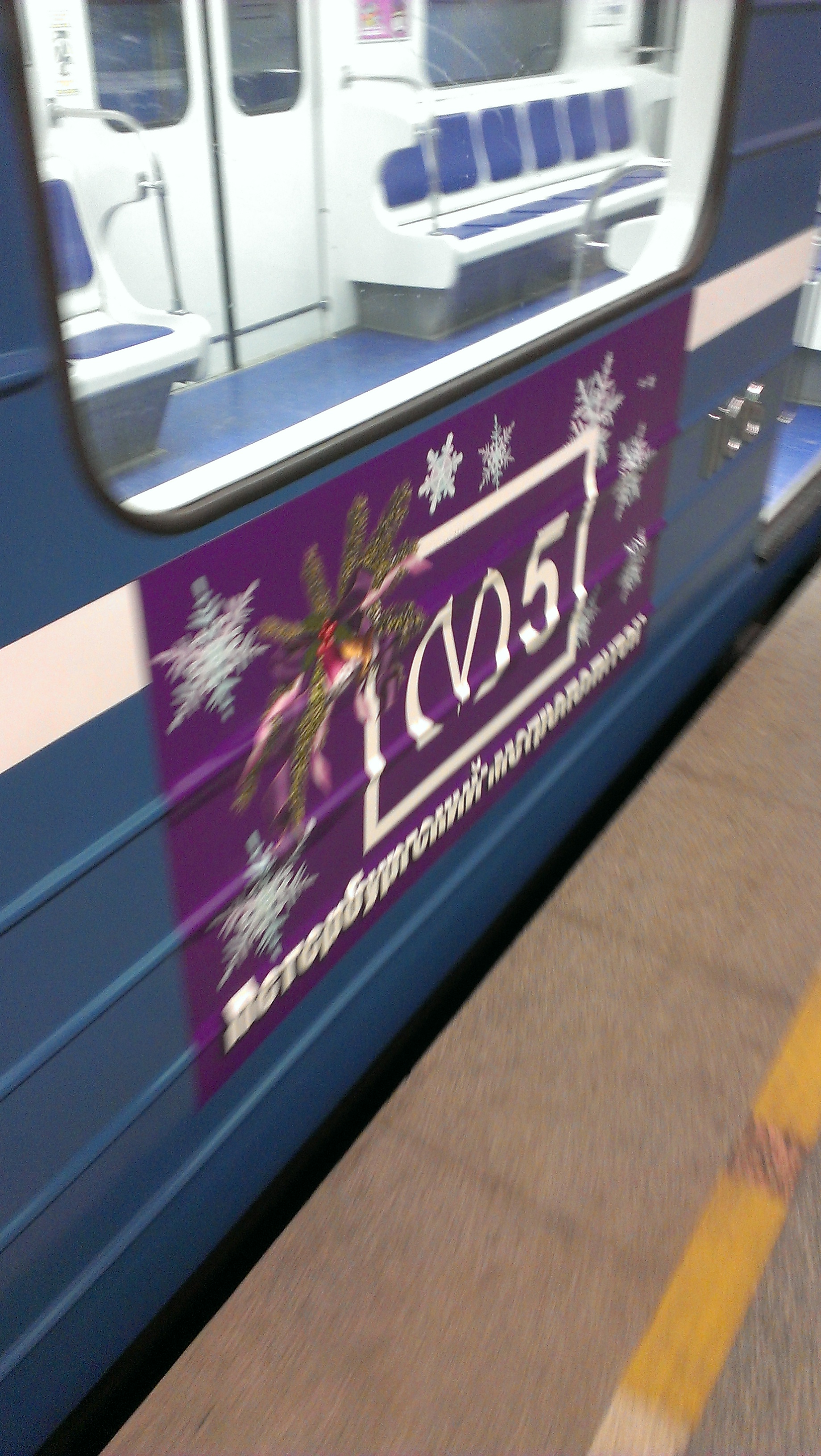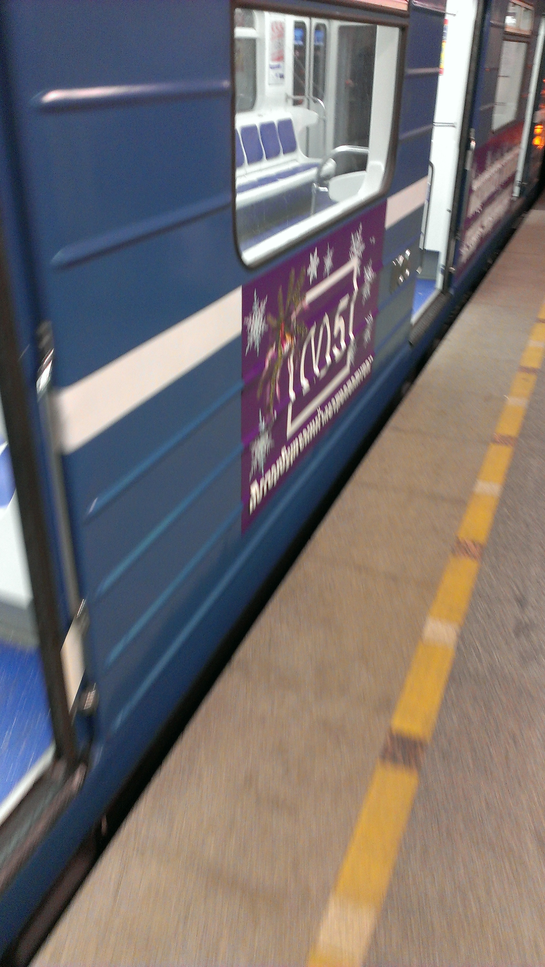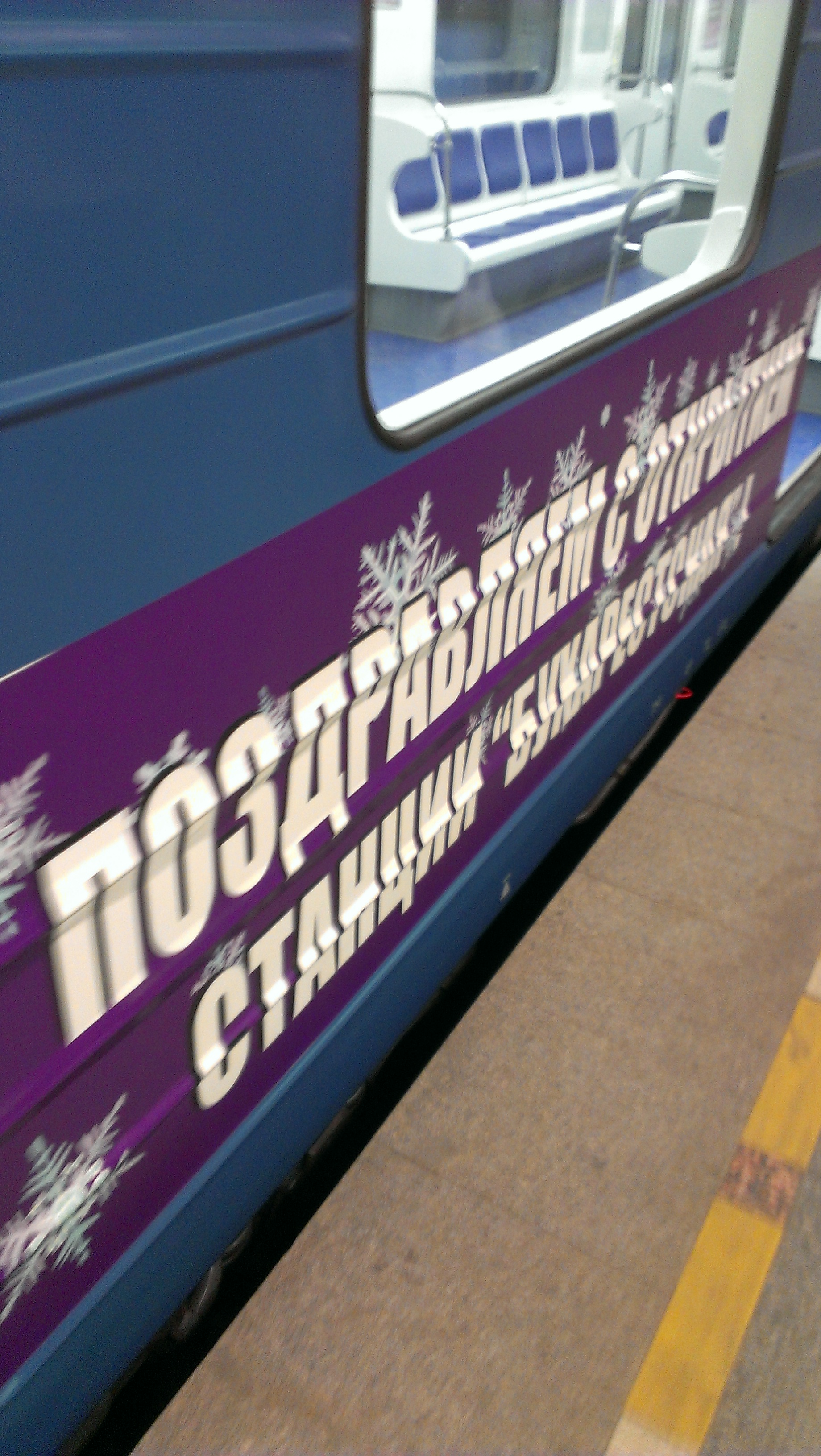 Праздничный метропоезд с открытия Бухарестской/Международной 31 января 2013г. 20:20 (прибыл со стороны "Международной"):